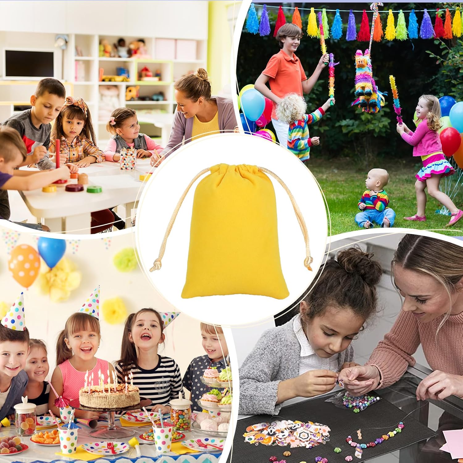 Velvet Drawstring Jewelry Bag, 50Pcs Yellow Coin Pouch, 3x4 Dice Bag, for Wrapping Halloween Party Favors or Gifts for Friends, Small Bussiness, Resin Runes, Chains, Customers