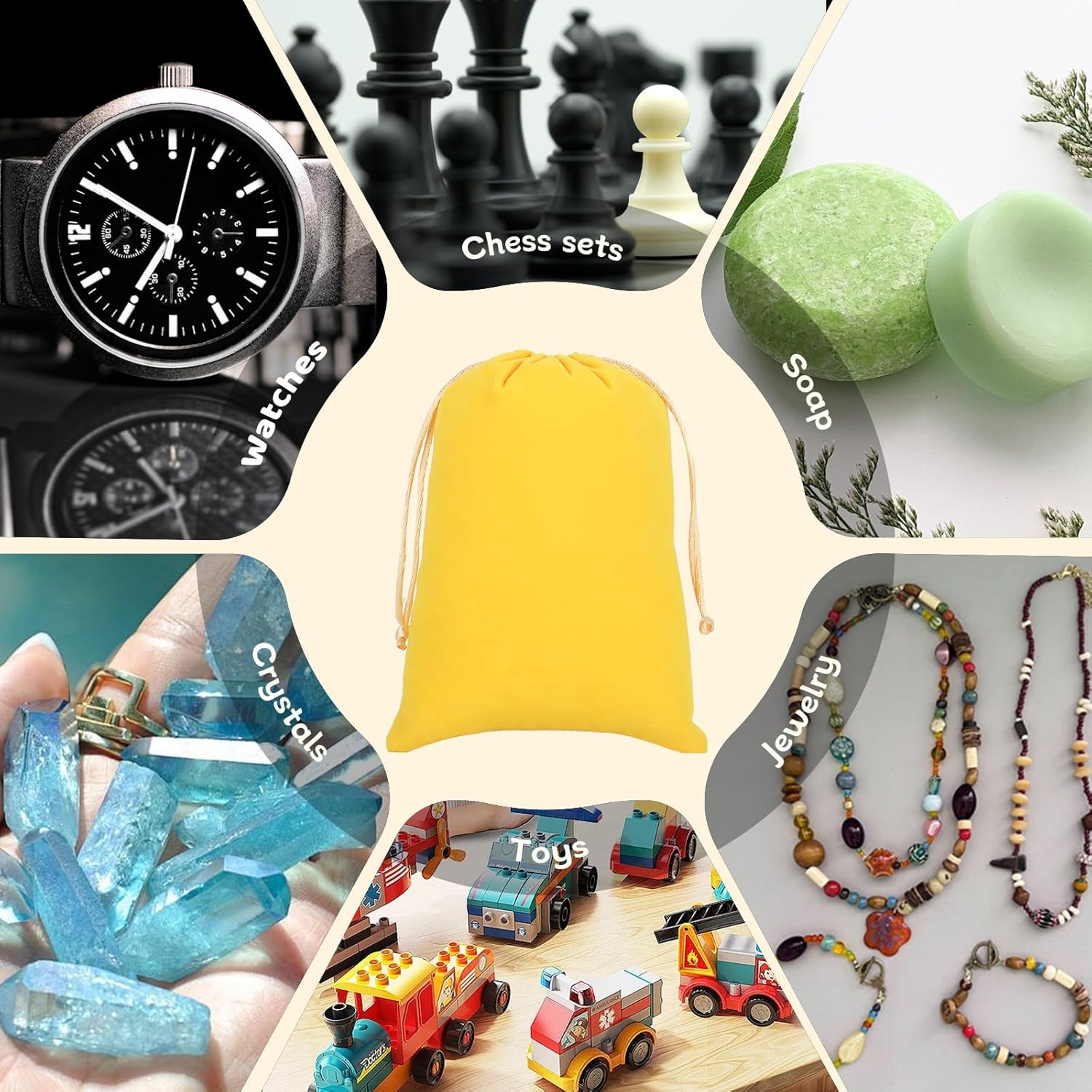 Velvet Drawstring Jewelry Bag, 50Pcs Yellow Dice Bag, 5x7, Or Wrapping Halloween Party Favors, Mojo, Small Bussiness, Resin Runes, Chains, Customers