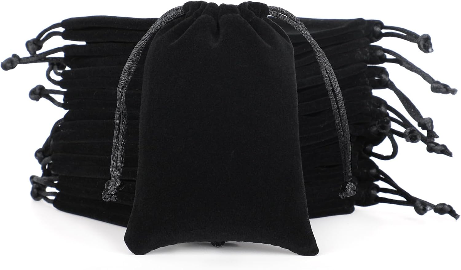 Velvet Drawstring Jewelry Bag, 50Pcs Black Coin Pouch, 3x4 Dice Bag, Or Wrapping Halloween Party Favors, Small Jewelry, Small Bussiness, Palm Crosses, Chains, Bracelet, For Church