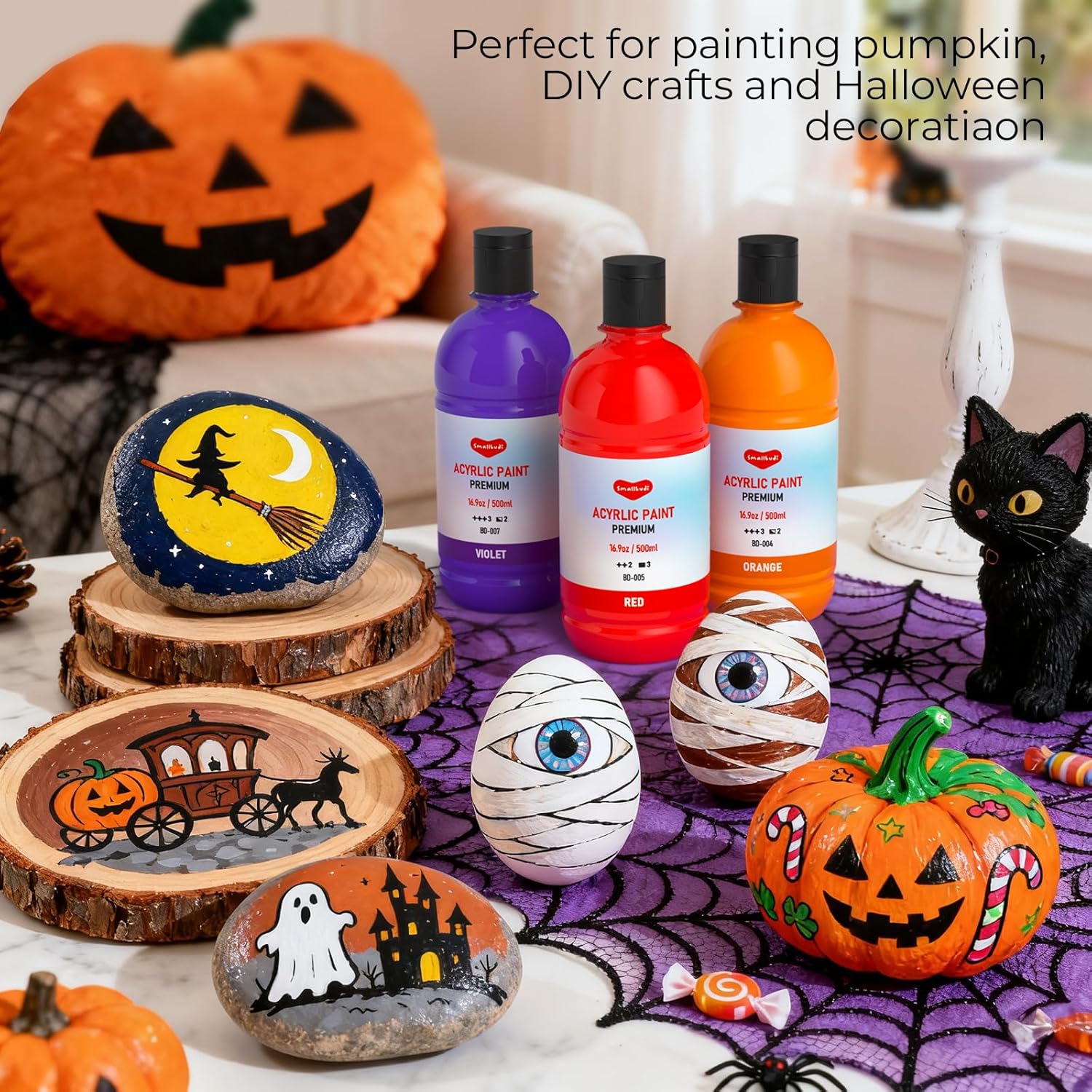 - Rich Pigment Pumpkin Paint- Crafted with high-quality pigments, this acrylic paint delivers a smooth, creamy texture that blends effortlessly. The rich colors mix well to create a wide range of hues, bringing vibrant brilliance to your artwork. It offers excellent coverage with fewer layers, ideal for Halloween decorations, DIY costumes, and pumpkin
