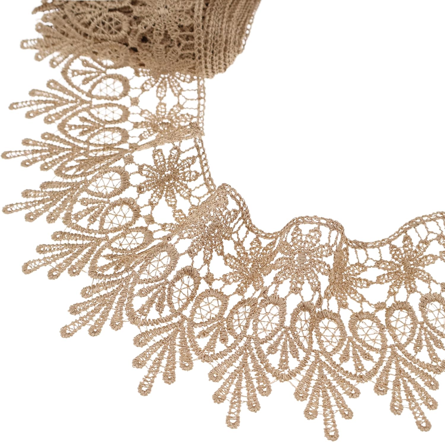 - - With 5 yards of premium golden lace at your disposal, you can tackle multiple projects without any hassle. The generous length ensures that you have ample material to explore your artistic vision, whether you're adding lace to curtains or crafting custom apparel.
