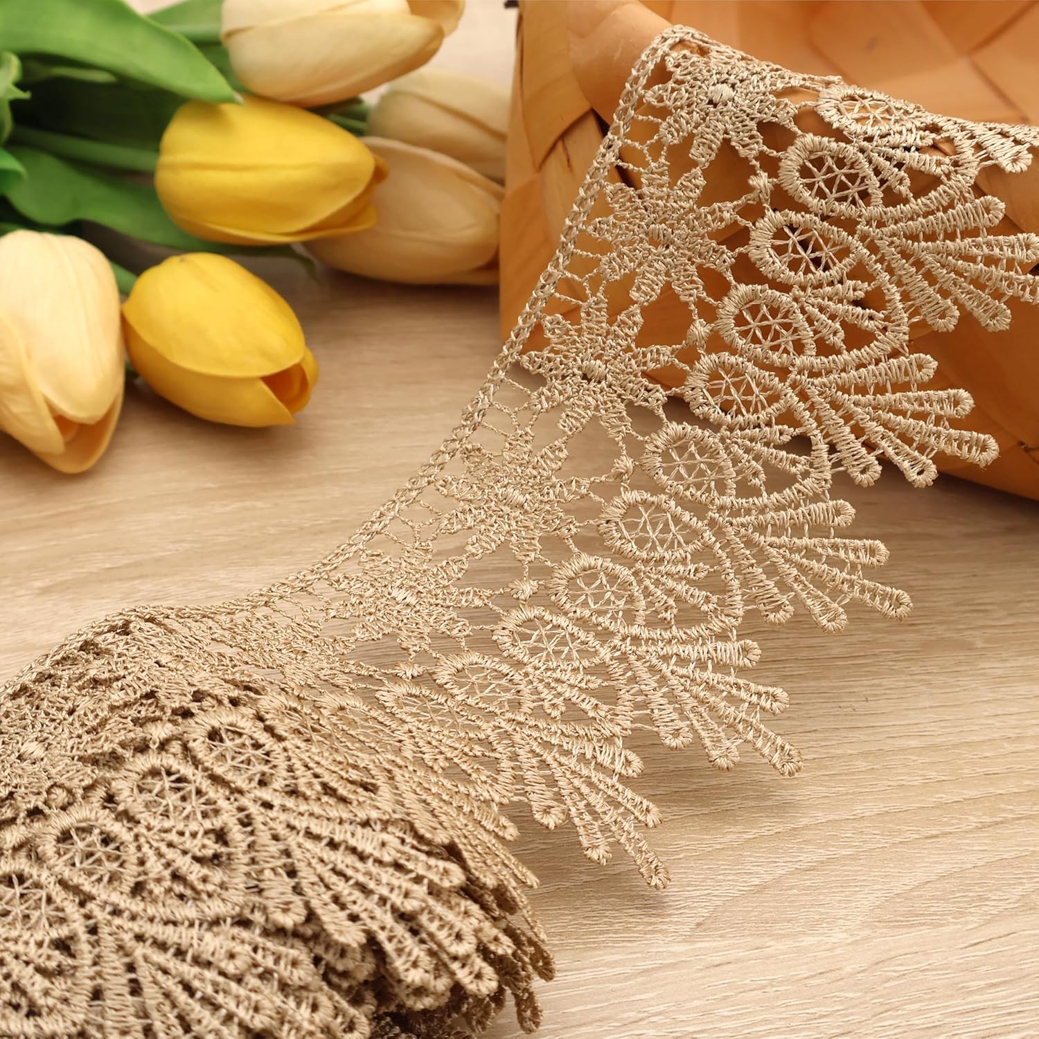 GXTIZAS Golden Lace Trim 5 Yards Wide Venise Lace Ribbon Embroidered Edge Trim for Sewing Crafts Pillow Case