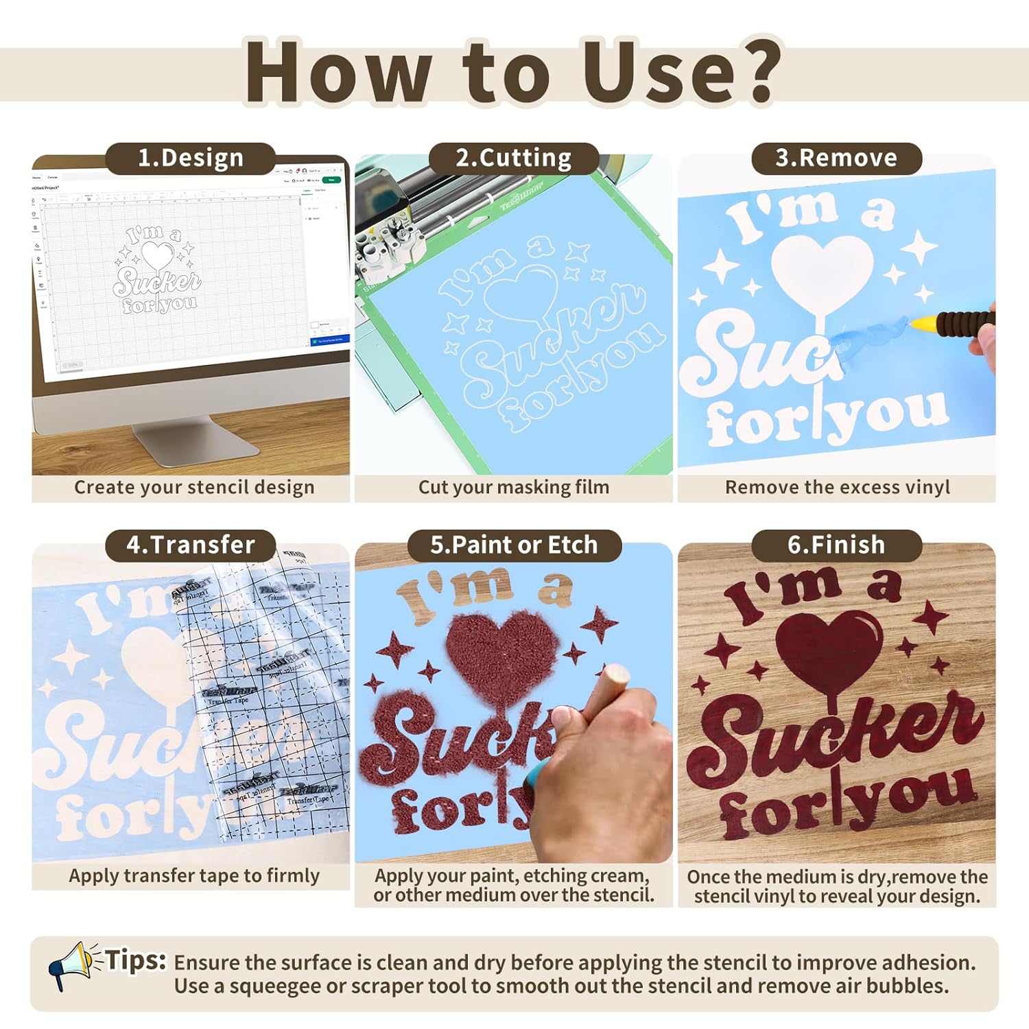 - Easy to Cut & Weed and Transfer. The semi-translucent removable vinyl stencil material is compatible with all cutting machines, including the vinyl for Cricut models, ensuring that anyone can create their own custom stencils with ease. Whether you're using it for stencil vinyl for cricut or stencil paper, the vinyl transfer tape for vinyl ensures smooth transfer with no bubbles or wrinkles.
