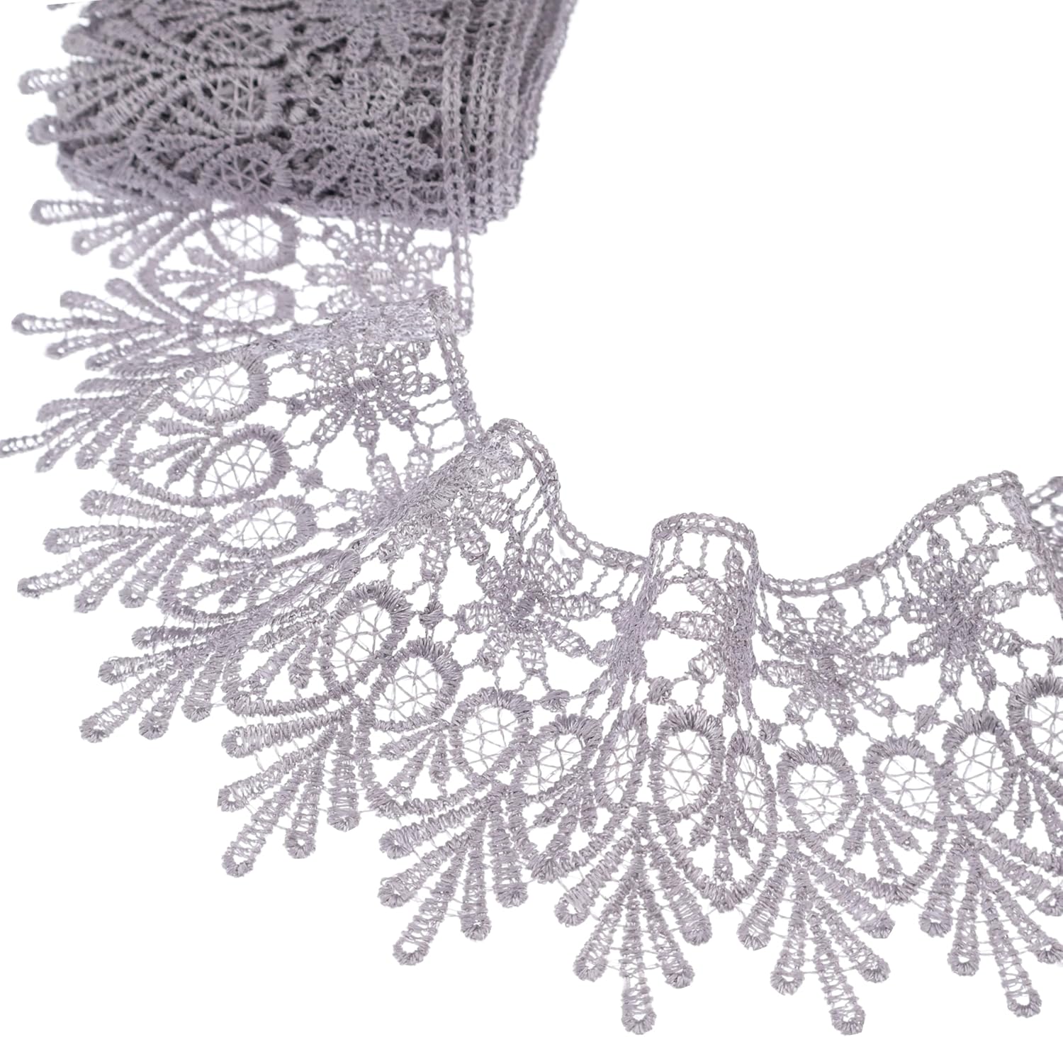 - - With 5 yards of premium gray lace at your disposal, you can tackle multiple projects without any hassle. The generous length ensures that you have ample material to explore your artistic vision, whether you're adding lace to curtains or crafting custom apparel.