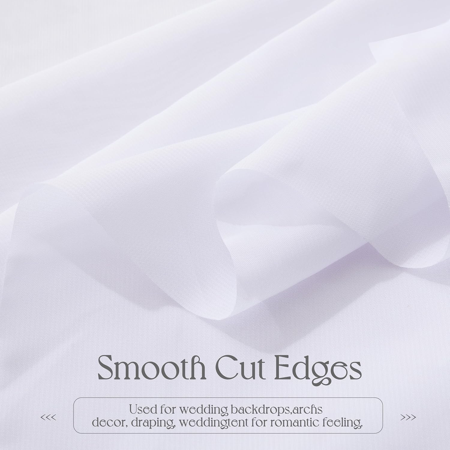 - SOFT CHIFFON FABRIC: Wedding arch sheer draping fabric is made of high-quality 100 percent wrinkle-free chiffon fabric. The chiffon backdrop drapes are silky smooth to touch and easy to hang, suitable for decorating wedding arches, party backdrops, photo backdrops. Machine washable, reusable, not easy to wrinkle and fade.