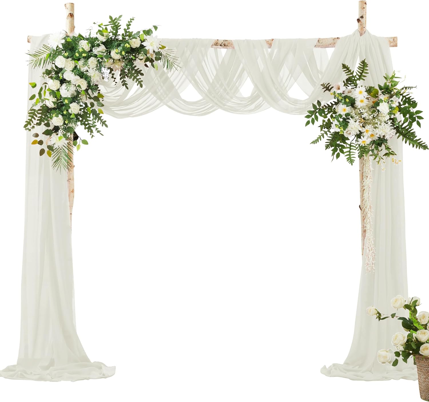 VACVELT Wedding Arch Draping Fabric, Ivory Chiffon, 2 Panels Sheer Drapes, 30 Inch x 20ft Chiffon Backdrop Curtain, Outdoor Sheer Drapery for Ceremony Party Ceiling