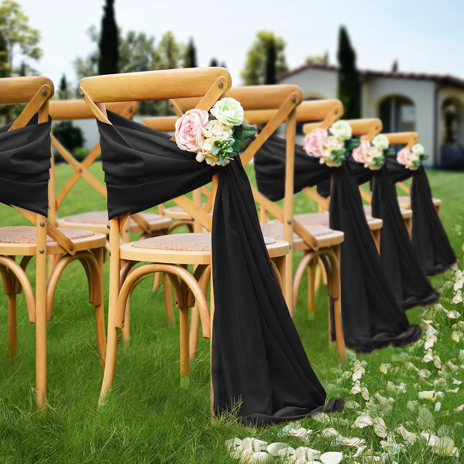 - WIDE APPLICATION RANGE: With neatly cut edges and rich colors, wedding arch drapes add a sense of happiness by using them with garlands, banners, display boards and other wedding decorations. It can also be used as chiffon table runners, chiffon tablecloths, chiffon chair sashes.