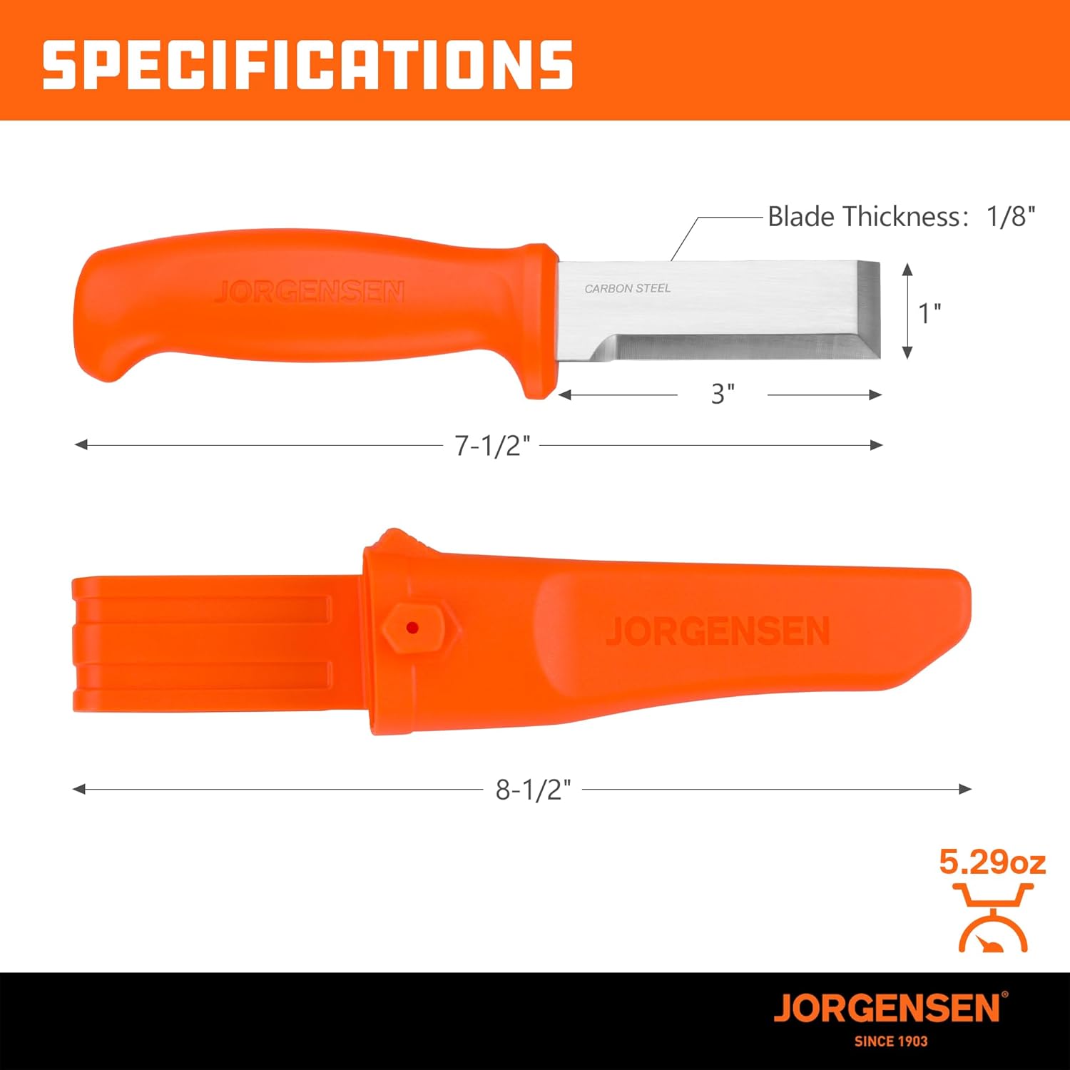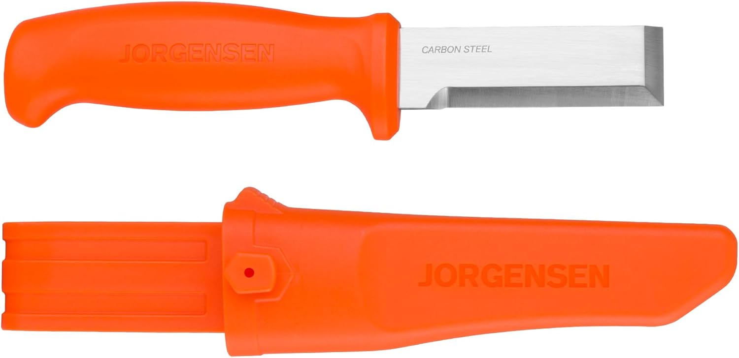 Jorgensen Wood Chisel Knife with Sheath, Wood Chisel for Woodworking with Ergonomic Handle, SK5 Carbon Steel Blade, Full Tang Design, for Carving, Whittling, Splitting