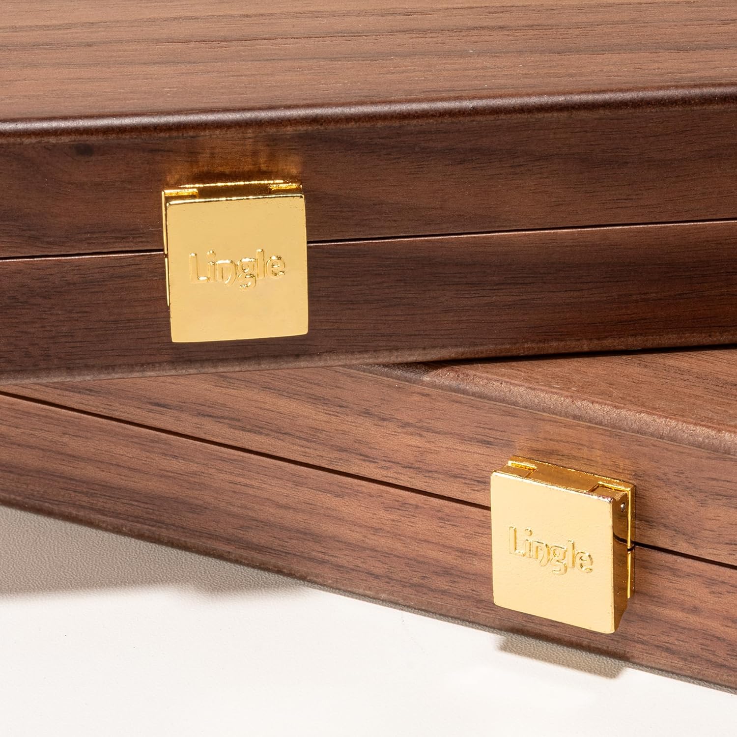 - Exquisite Natural Walnut Backgammon Game Set: This backgammon board is made of durable walnut wood, featuring unique grain and warm tones, with a smooth and delicate touch. It showcases excellent craftsmanship and texture, enriching your gaming experience