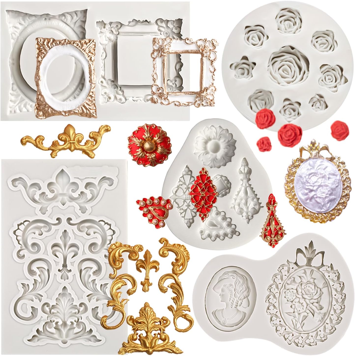 - Package include: You will receive 2pcs picture frame molds,1pcs baroque mold,1pcs jewelry fondant mold,1pcs rose flower fondant mold,please refer to the picture for specific size and style.