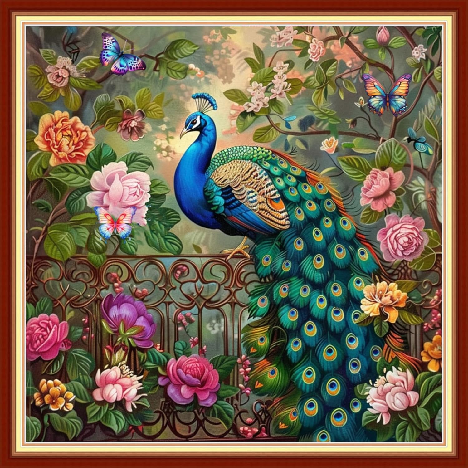 Magxvouy Cross Stitch Kits Stamped Full Range of Embroidery Kits,Cross Stitch Patterns Needlework Kits for Beginners 11CT Printed Kits&Peacock Butterfly 18x18 inch