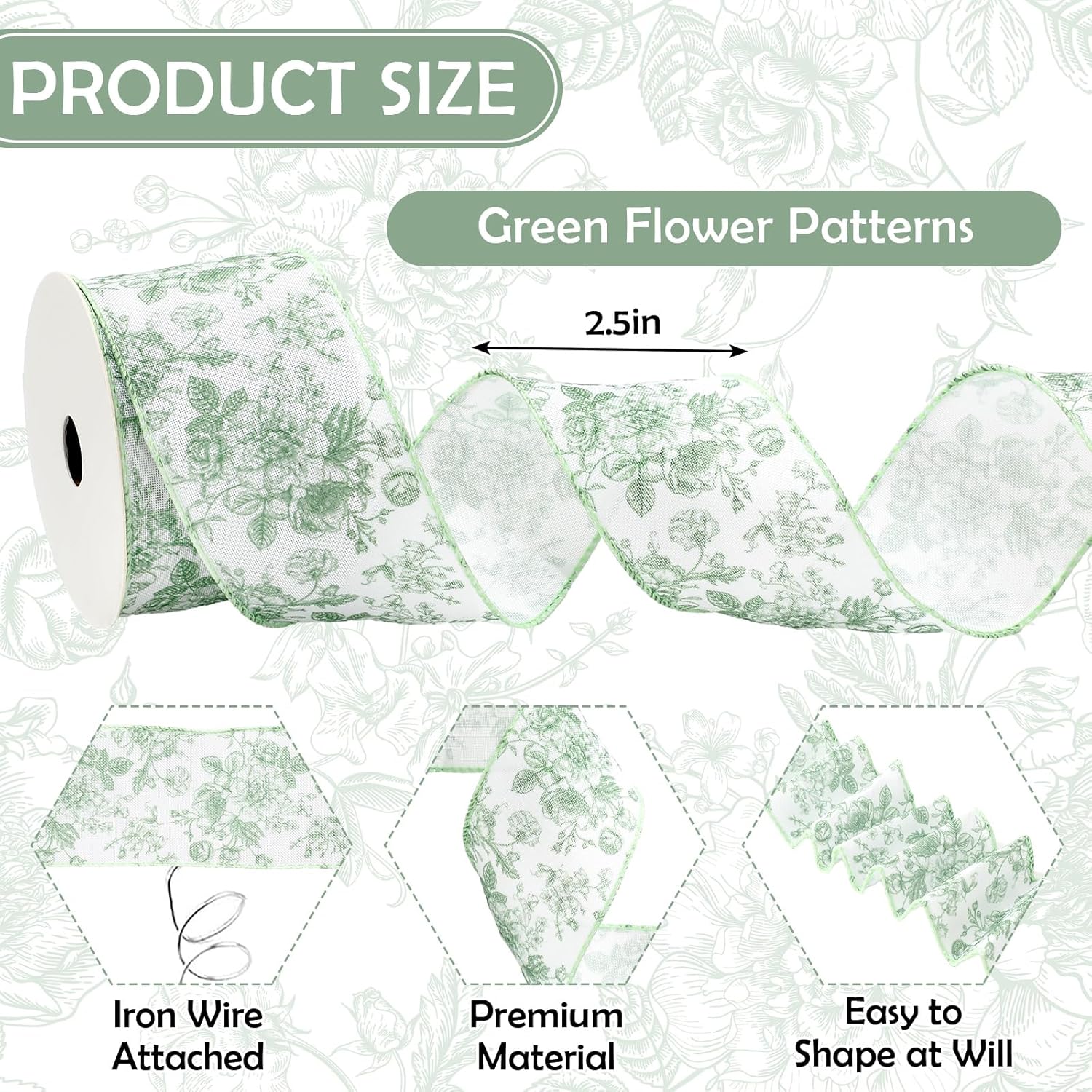 - THE PACKAGE INCLUDES: 1 roll of green floral wired edge ribbon is included in the package, delicate design that is quite suitable for crafts making and gift wrapping.