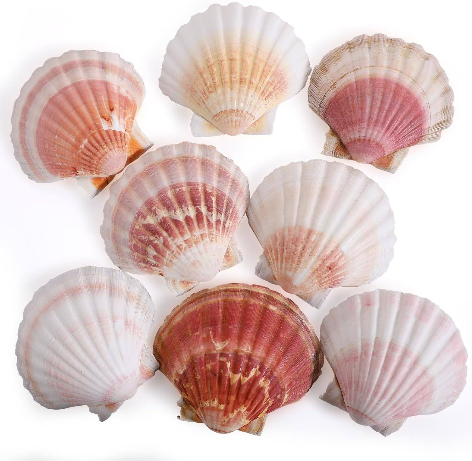 8 PCS 4-4.5 Inch Natural White&Pink Scallop Shells Sea Shells for DIY Craft Home Décor