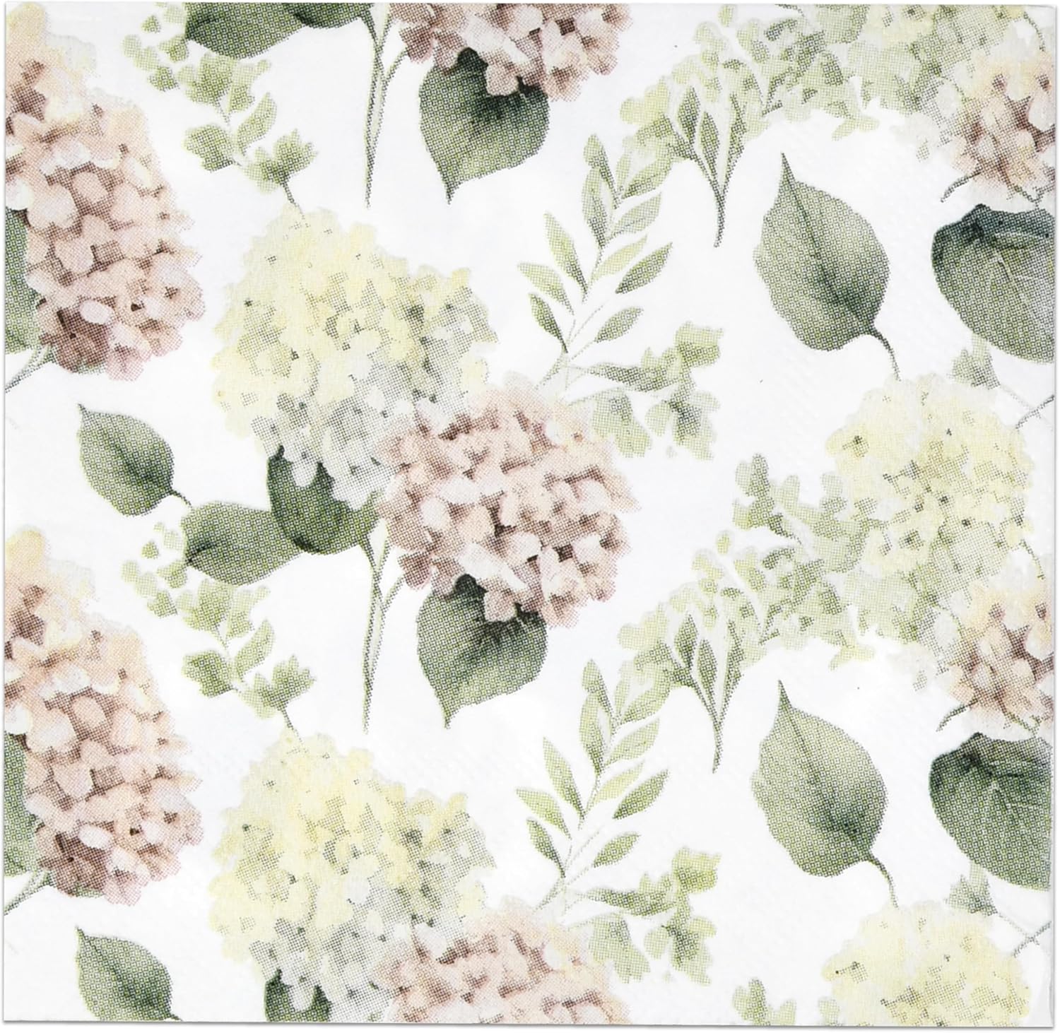 - Hydrangea Floral Cocktail Napkins: Gift Boutique floral beverage napkins features Hydrangea flowers on a white background. These napkins will definitely enhance your table and impress your guests. Napkins are 3-ply and measure 10” x 10” when unfolded and 5” x 5” when folded.