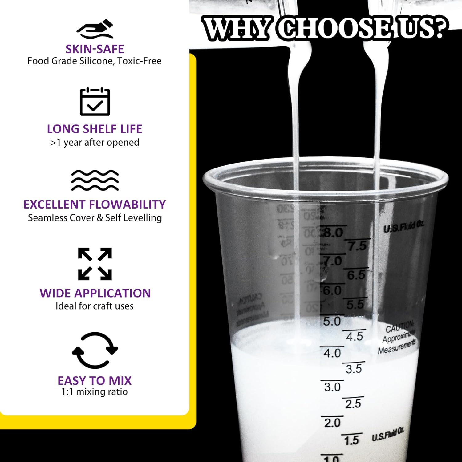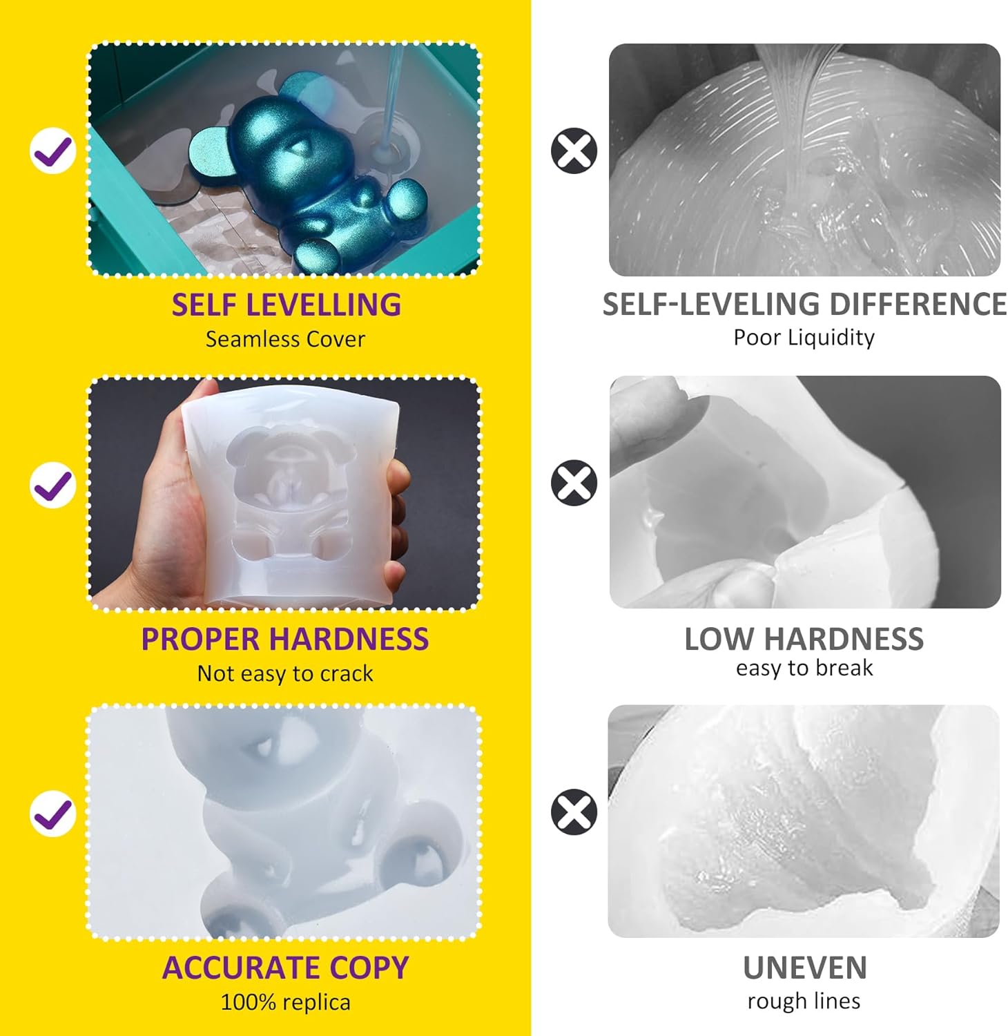 - HASSLE-FREE MIXING & POURING - Our silicone mold making kit features a simple 1:1 mixing ratio for easy prep. With a smooth, water-like consistency, it pours effortlessly to capture details accurately. Mix thoroughly for five minutes to ensure optimal results - ideal for both novices and experts, making mold-making enjoyable!