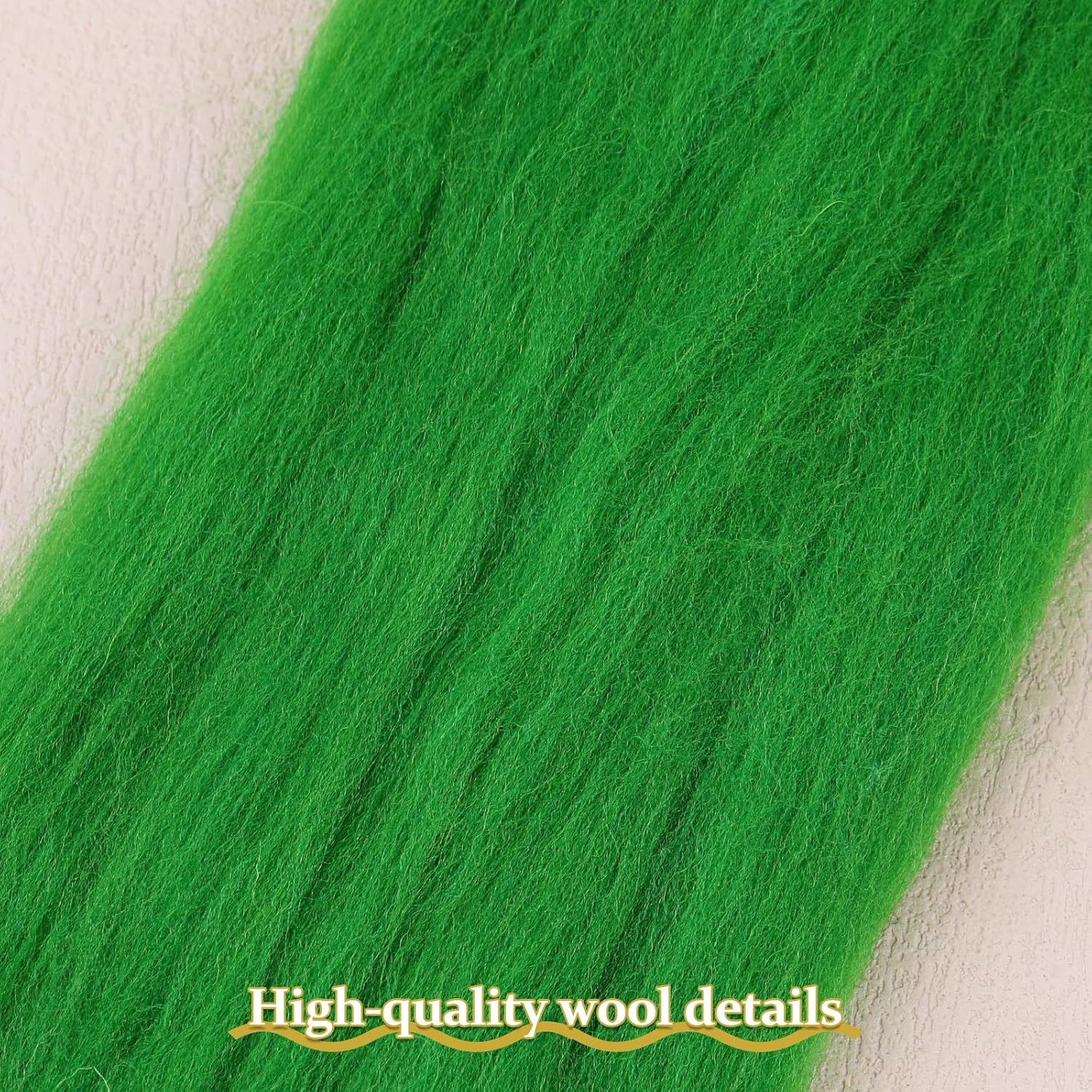 QMNNMA Wool Roving, Green Natural Wool Roving for Spinning, Soft Chunky Yarn for Wool Felting, Felting Pad, Felting Supply, Wool Yarn Bulk, Carded Stuffing