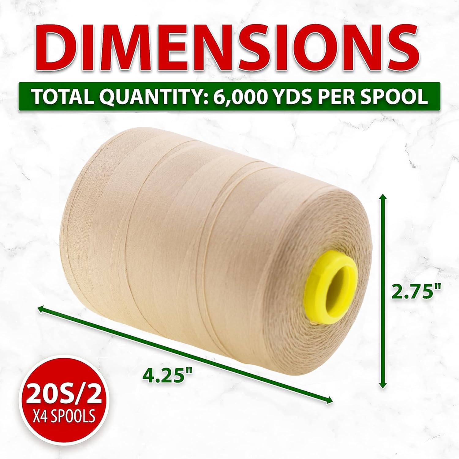- Bulk Natural Polyester Serger Spools Thread Sewing Supplies Kit: Each 4.25 x 3 x 3 in cone of thread is 6000 yards long. The 20wt all-purpose sewing thread serve as heavy duty cone serger thread for sewing machine for both residential and commercial use.
