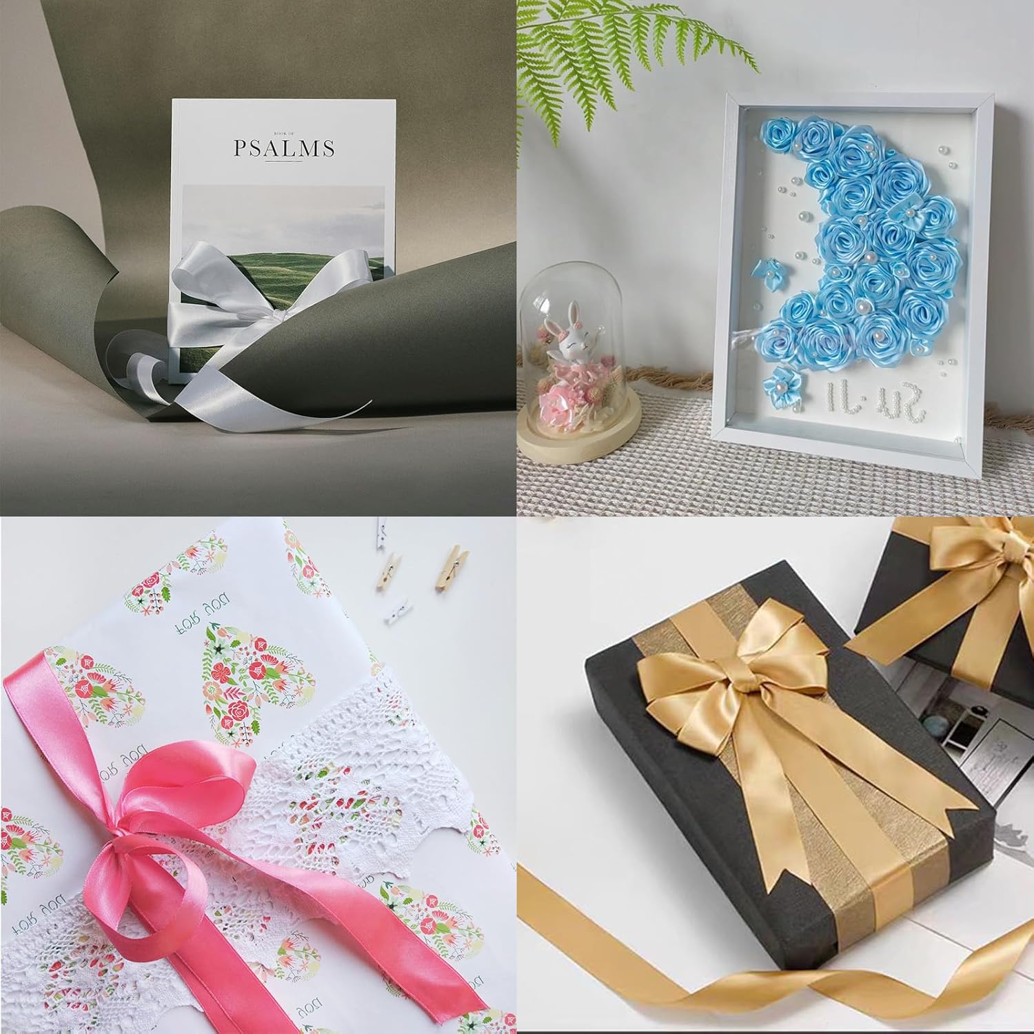 - 【Wide range of use】Double face satin ribbon is a silky, perfect for gift packing,Wedding decoration,hotel decoration,party decorations,Christmas decoration,Card Invitation,DIY hair bows,ornaments,sewing, handicrafts,toys,etc.