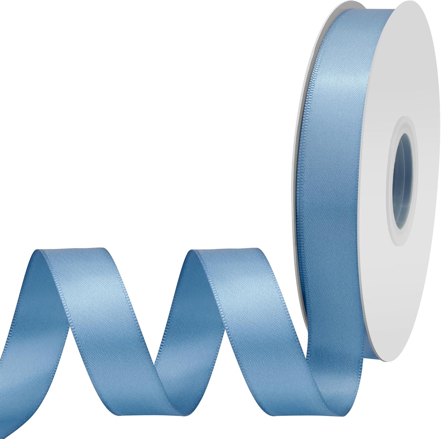 Dusty Blue Satin Ribbon 3/4" X 50 Yards Solid Color Double Faced Ribbons Perfect for Crafts Wedding Decor Bow Making Arts Sewing and More