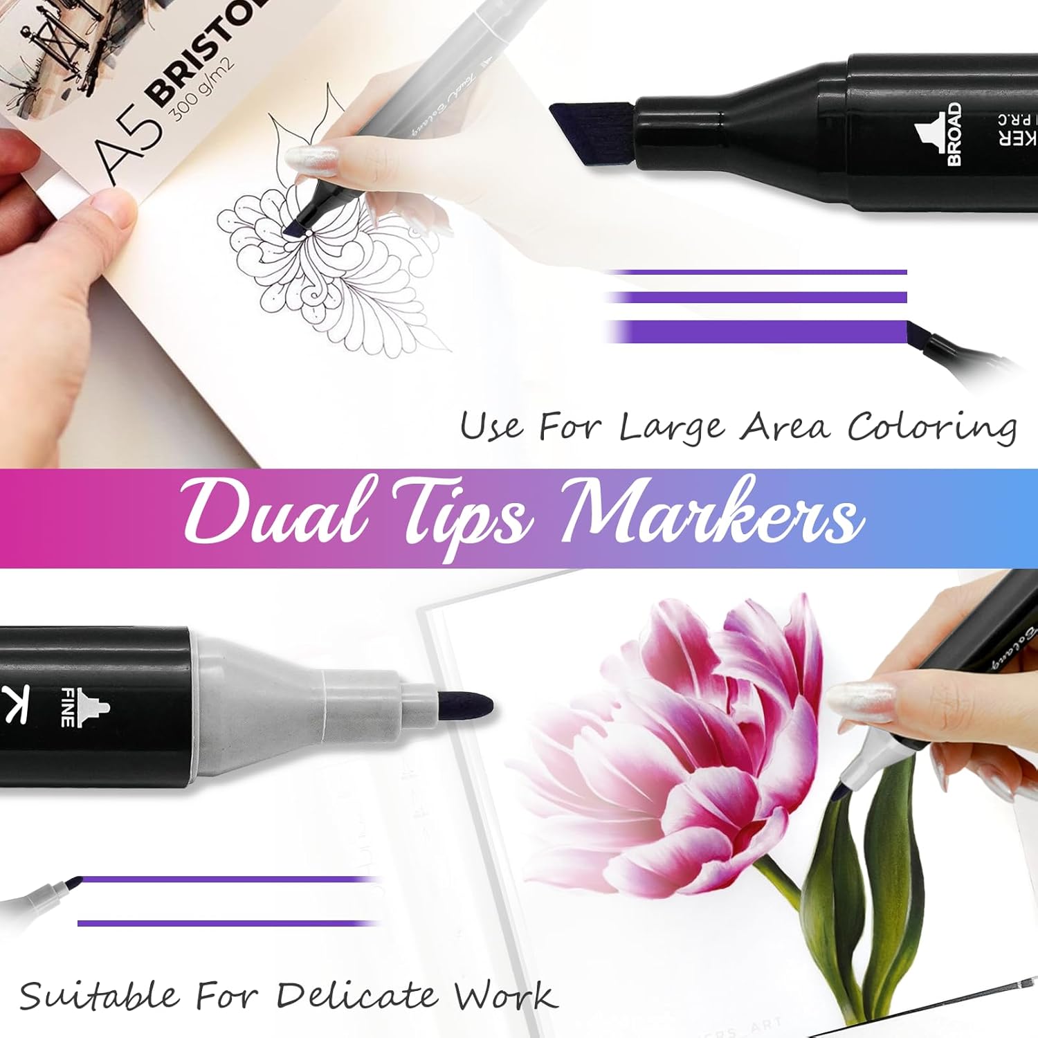 - 【PERFECT BLENDING】Great coverage and even colouring. Coloring markers for adults blend seamlessly to create beautiful, professional-grade artwork, art markers perfect for kids beginners and seasoned artists alike. Our alcohol-based inks dry quickly, ensuring that your artwork is always clean, vivid, smudge-free and ready to display