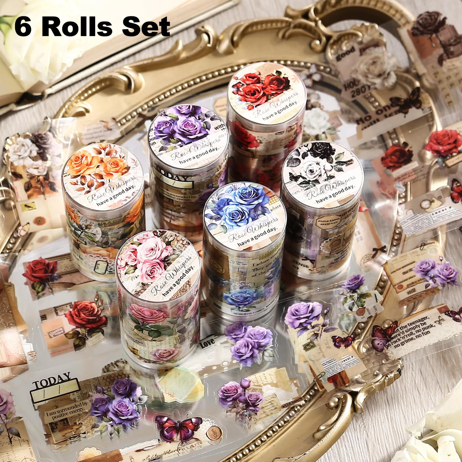 - Elegant Botanical Patterns: This set features 6 rolls of PET tape, each adorned with intricate rose-themed botanical designs. Perfect for adding a touch of floral elegance to your journals, scrapbooks, and creative projects