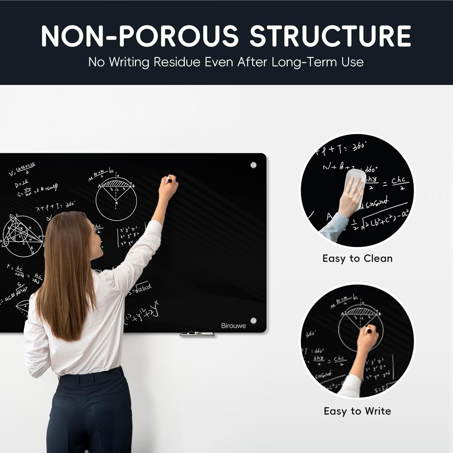 - Superior Durability & Clarity: Crafted from high-density tempered glass, our dry erase black board offers unmatched durability and resilience. It resists stains, ghosting, scratches, and dents, ensuring a clear and pristine surface for years of heavy use. Perfect for frequent writing, erasing, and rewriting without leaving any marks.
