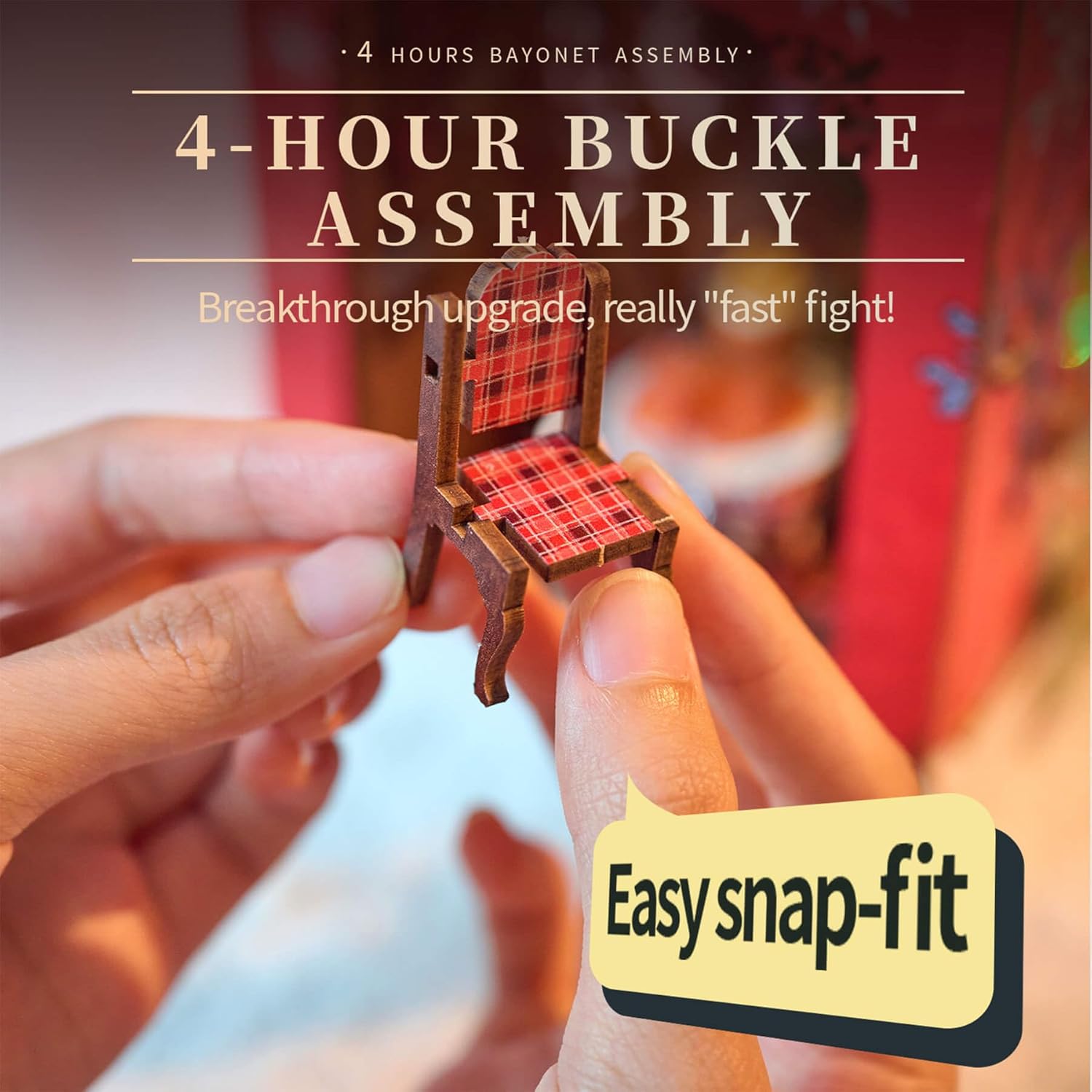 - 🧩 Sturdy and Simple Assembly: Enjoy the stability of a snap-fit design combined with the precision of laser-cut pieces, making the 3D wooden puzzle book nook kit easy to assemble in about 4 hours.