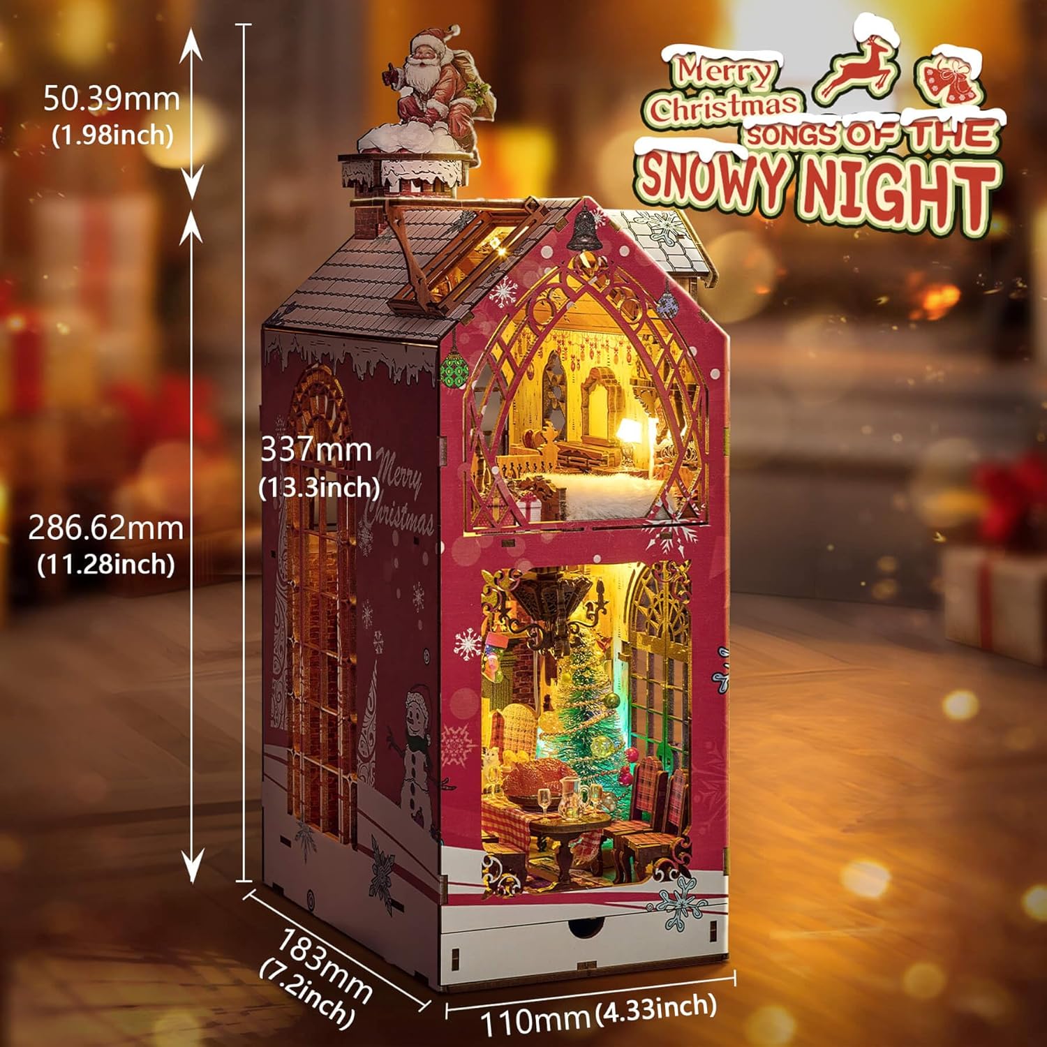 - 🎅 Inspired Design: Celebrate the festive spirit with our Merry Christmas DIY Book Nook, featuring Santa Claus in a snowy night setting—perfect for adding a touch of holiday magic to your decor.