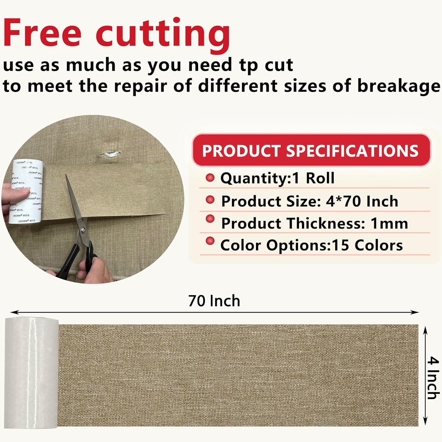 Linen Repair Tape 4x70 Inch Self-Adhesive Couch Patch Repair Fabric Patch for Furniture,Sofas,Cushion,Chairs,Bags,Linen Goods(Camel)