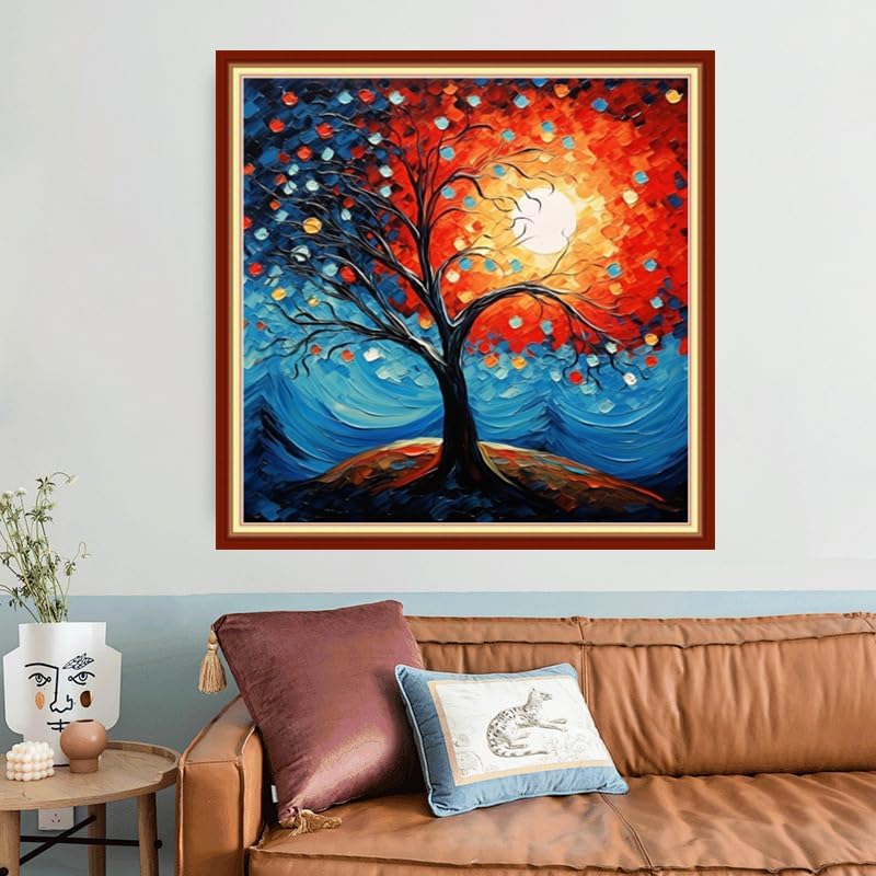 Joyhoor Stamped Cross Stitch Kits for Beginners, Needlepoint Kits for Adults, 11CT Counted Embroidery Kits-Moonlight Tree 18x18 inchs