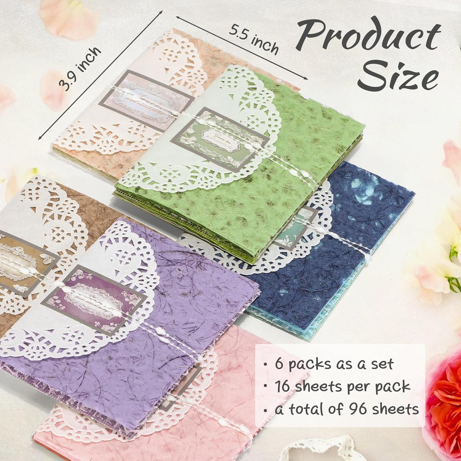 96 Sheets Textured Scrapbook Paper Set - 6 Color Themes, Assorted Mesh Fabric, Decoupage Paper for Junk Journals, Card Making, DIY Crafts (3.9x5.5 Inch)