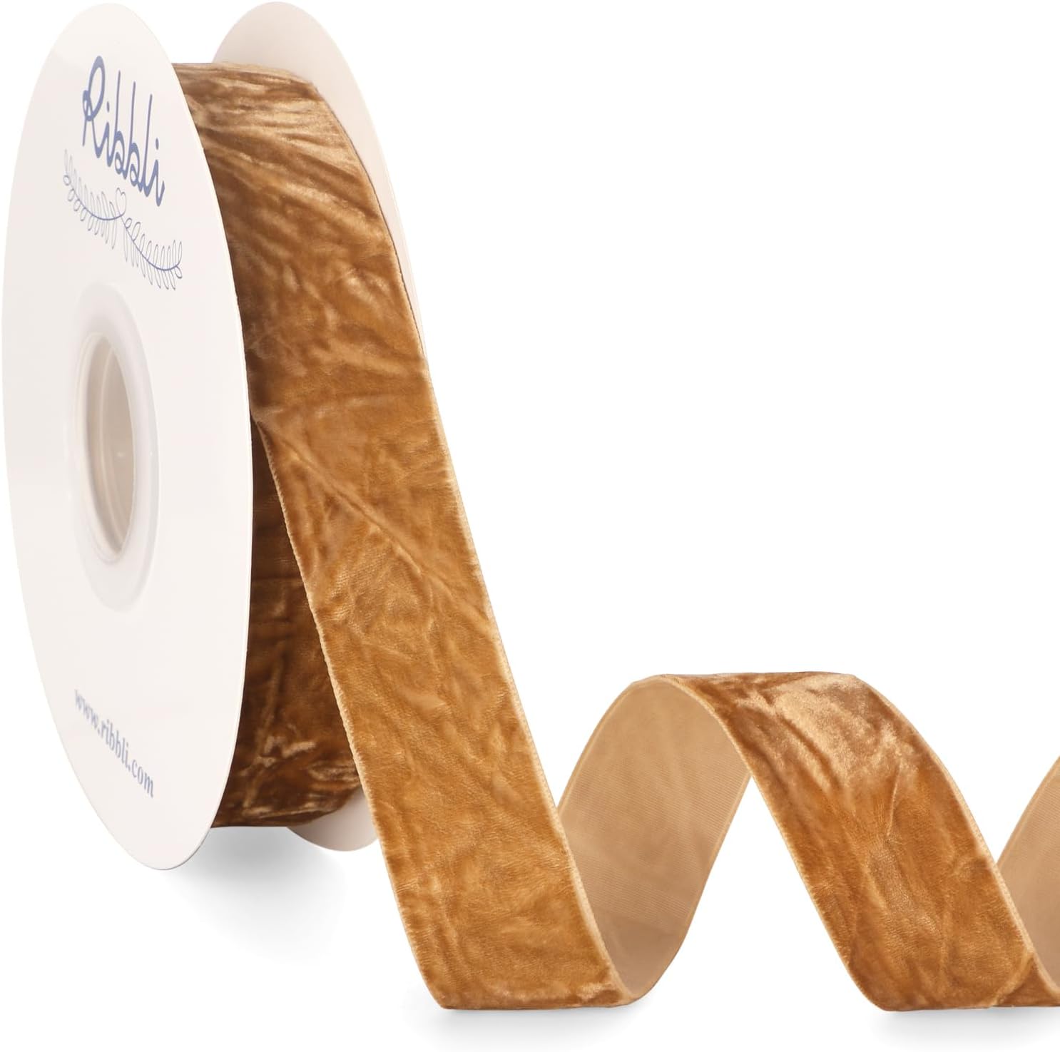 Ribbli Khaki Velvet Ribbon 1 Inches Luxury Crinkled Brown Christmas Ribbon for Gift Wrapping Crafts Home Decor-Continuous 10 Yard
