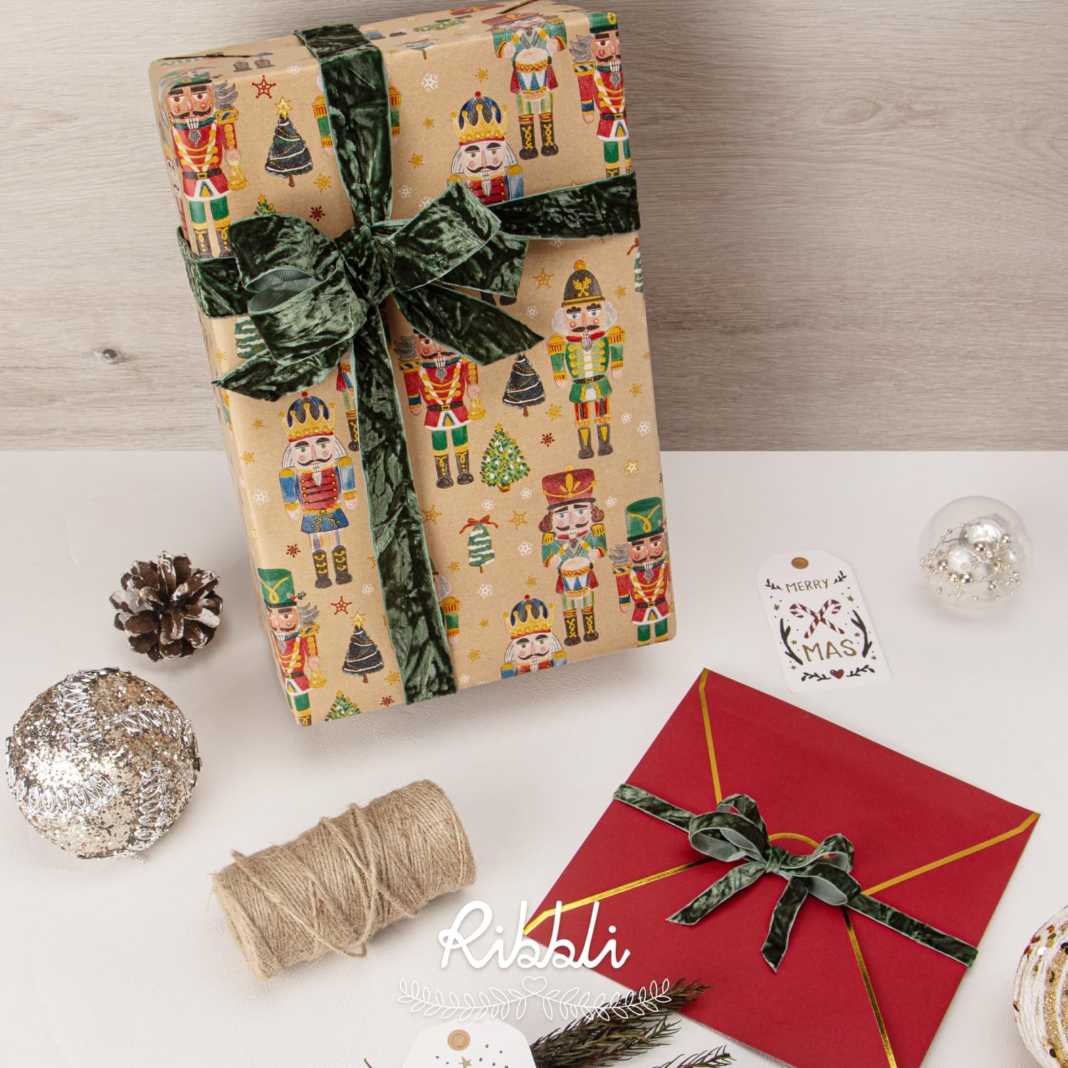 Ribbli Forest Green Velvet Ribbon 3/8 Inches Luxury Crinkled Green Christmas Ribbon for Gift Wrapping Crafts Home Decor-Continuous 10 Yard