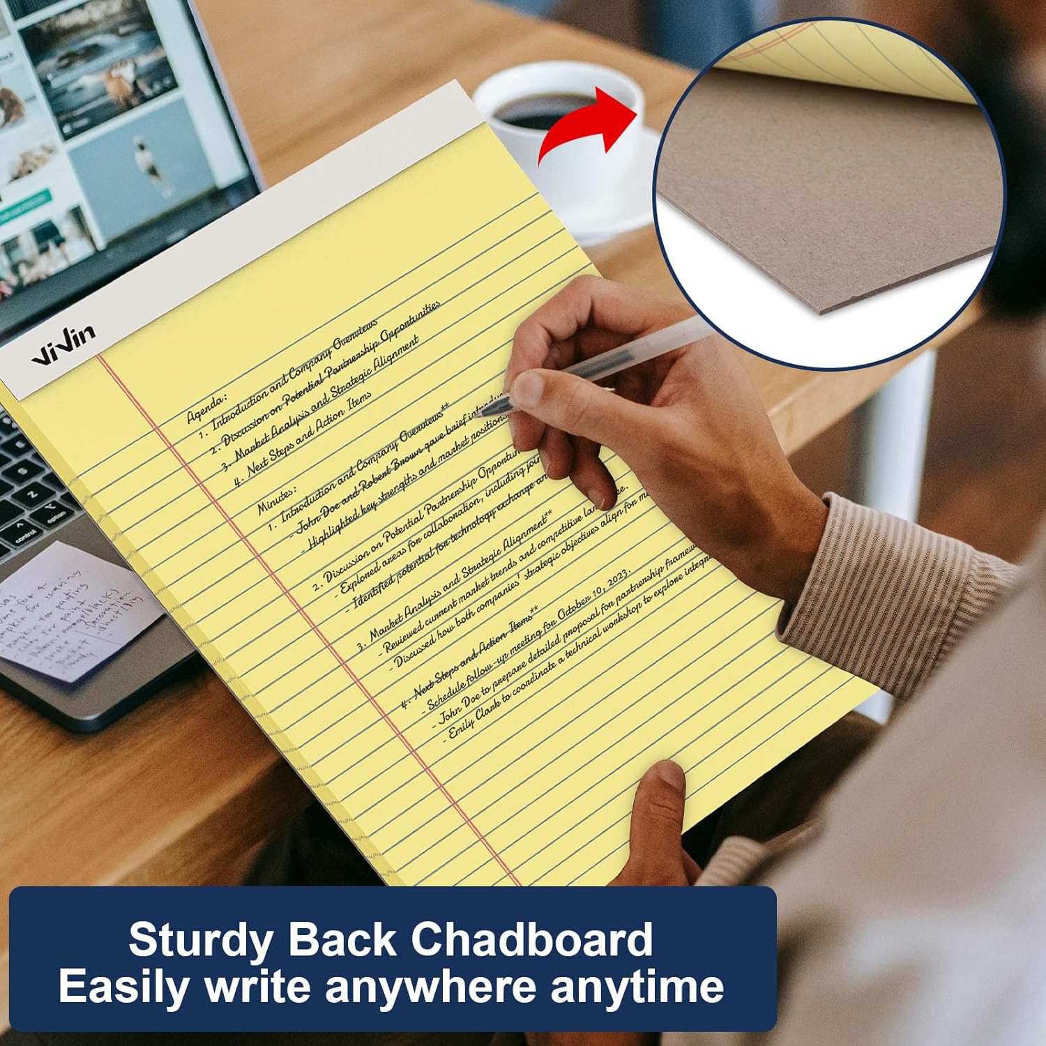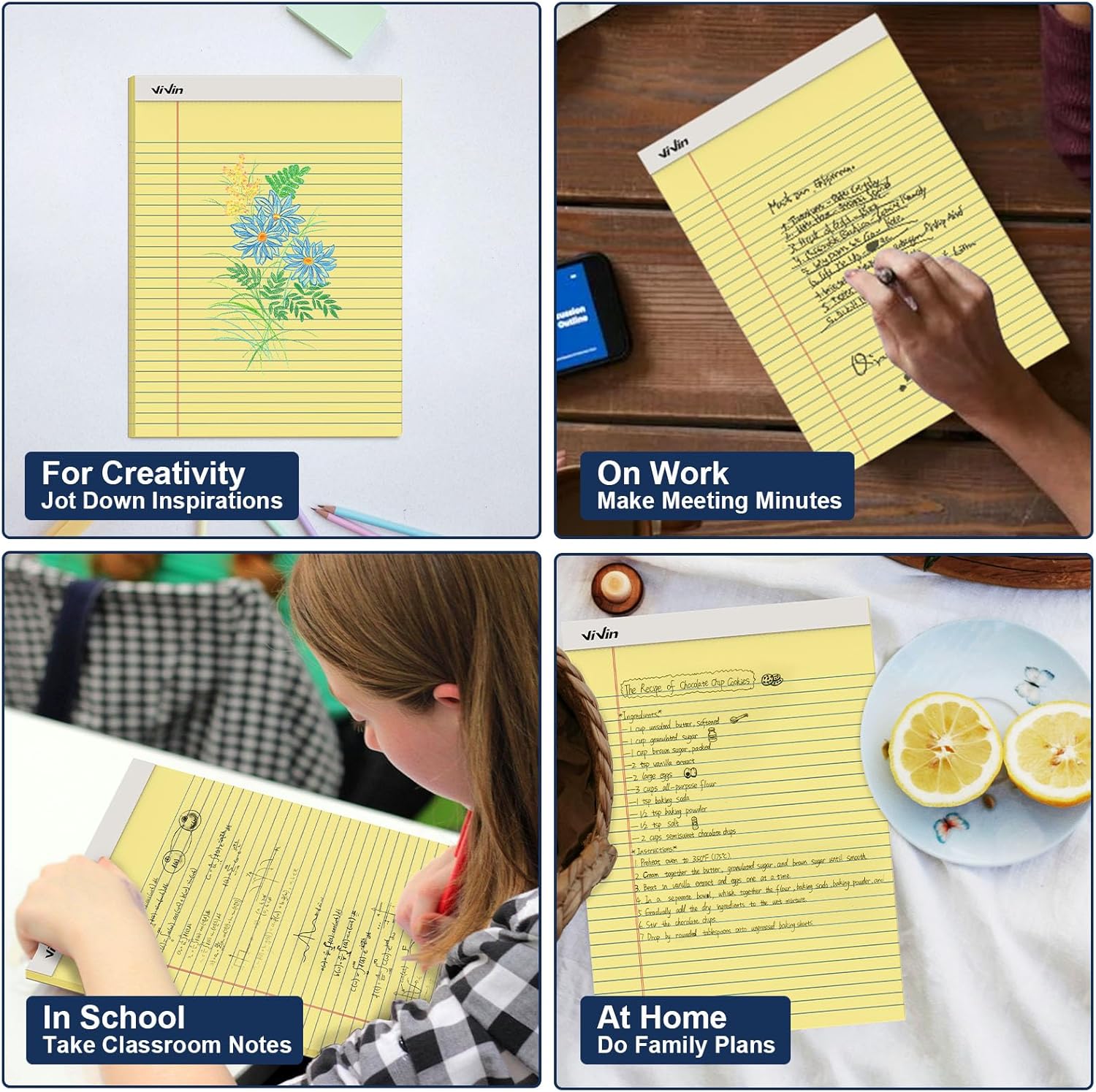 ViVin Legal Pads 8.5 x 11 Inch, Wide Ruled Note Pads, 6 Pack, 50 Sheet/Pad, Notepads for Office Home School, 300 Sheets, Perforated Writing Pads, Canary Yellow Paper