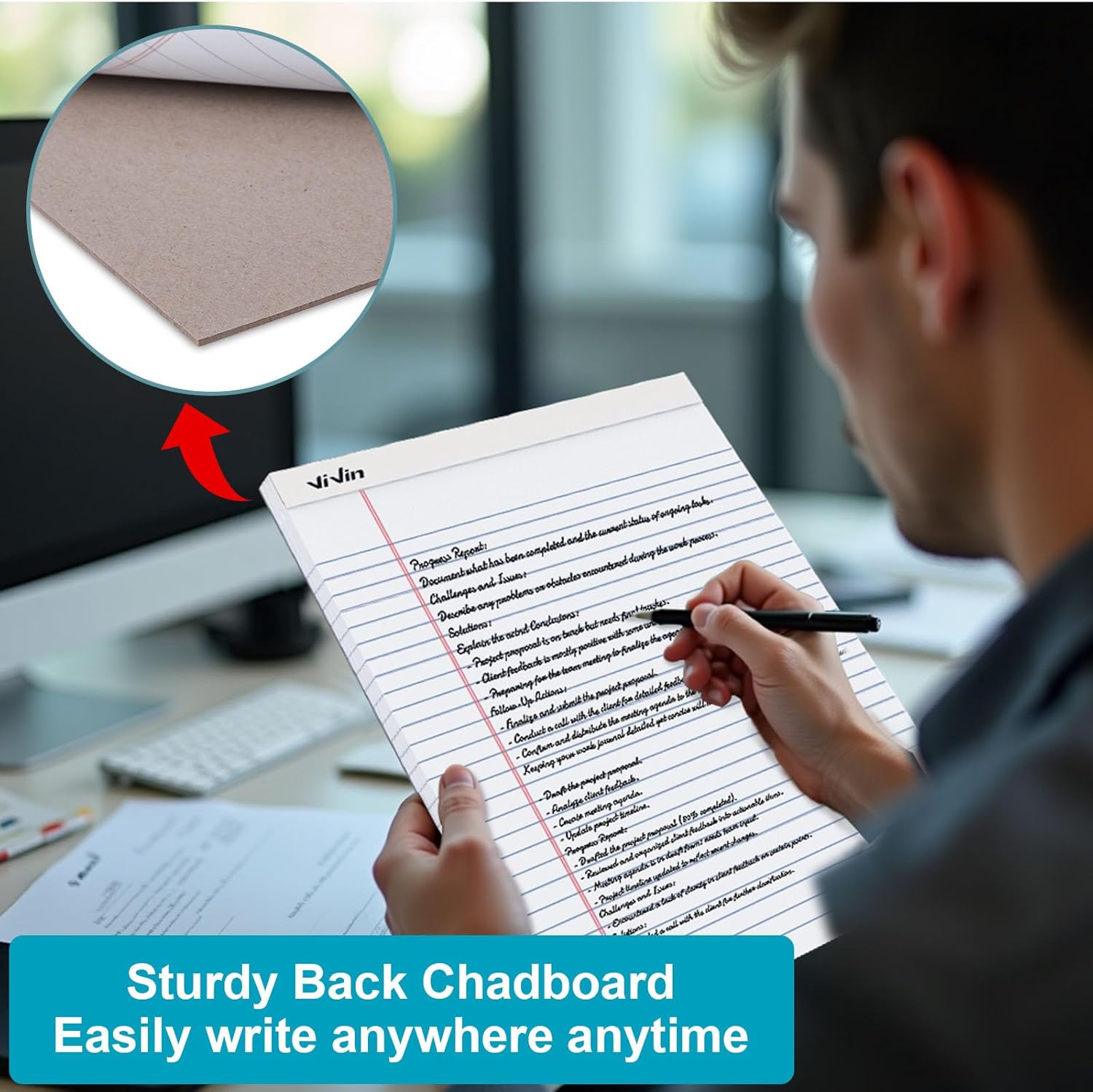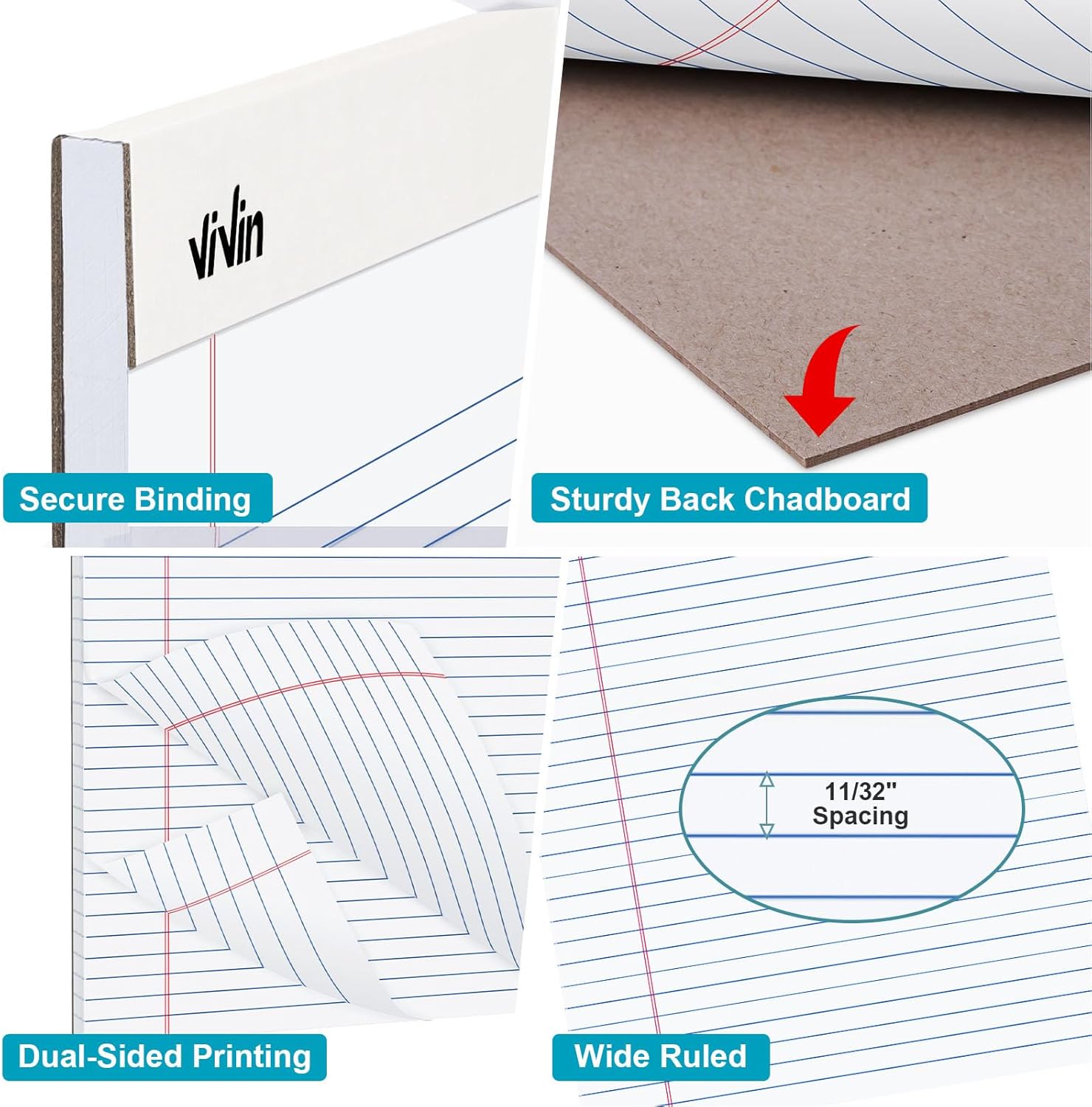 ViVin Legal Pads 8.5 x 11 Inch, Wide Ruled Note Pads, 12 Pack, 50 Sheet/Pad, Perforated Writing Pads, Notepads for Office Home School, 600 Sheets, White Paper