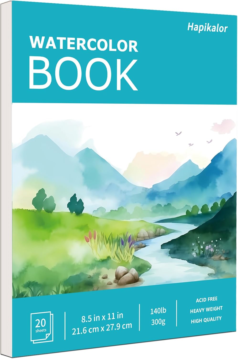 Hapikalor 8.5"x11" Watercolor Paper Pad, 1-Pack, 140lb/300gsm Artist Painting Drawing Paper Book, Art Supplies for Adults Kids, Watercolors, Watercolor Paint Set, Sketchbook, Journal, Teal