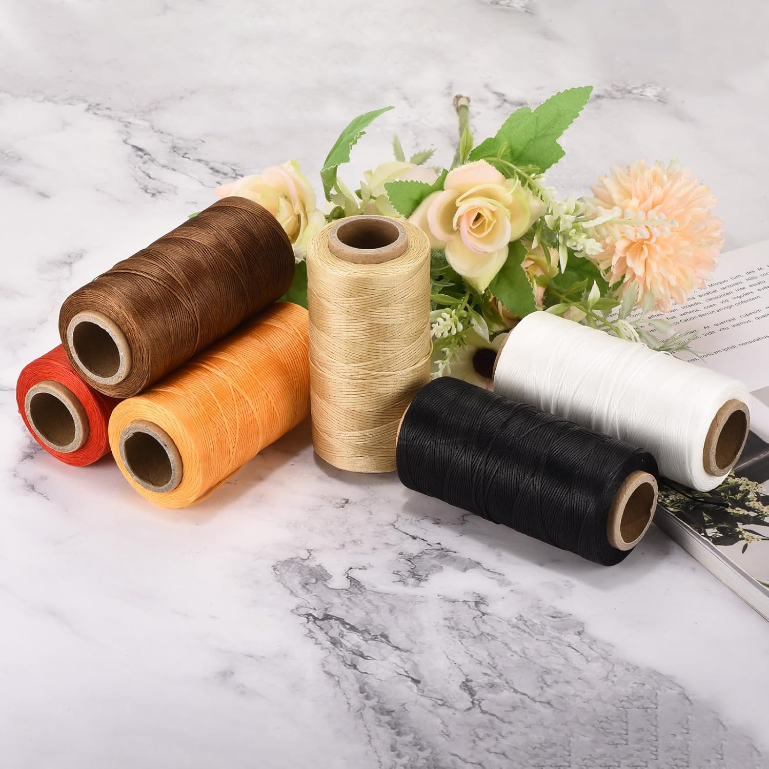 - 150D flat waxed thread is made of multiple polyester threads braided and covered with wax, which is tough and durable, not easy to break, and has high tensile strength; The waxed cord is soft and not easy to deform. The perforated sewing is smooth and flexible. It can withstand high temperatures and is easy to seal, cut, knot, and sew; it can be used for most leather DIY projects; Rich in colors, made of braided polyester, the thread is lightly waxed and coated, waterproof and non-fad