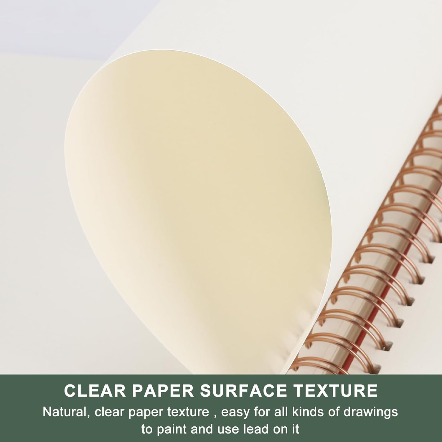 - 【Convenient Gold Ring Binding Design】: Our sketch book is attached using a sturdy Gold ring binding,Gold ring echoes the hot stamping process on the cover. which can protect the paper when turning pages. Meanwhile, the drawing pad is flexible, can be rotated 360 degrees to maximize the sketching, drawing, and writing space.You can express yourself smoother without your wrist being disturbed during sketching on the spiral bound sketchbook 9x12.