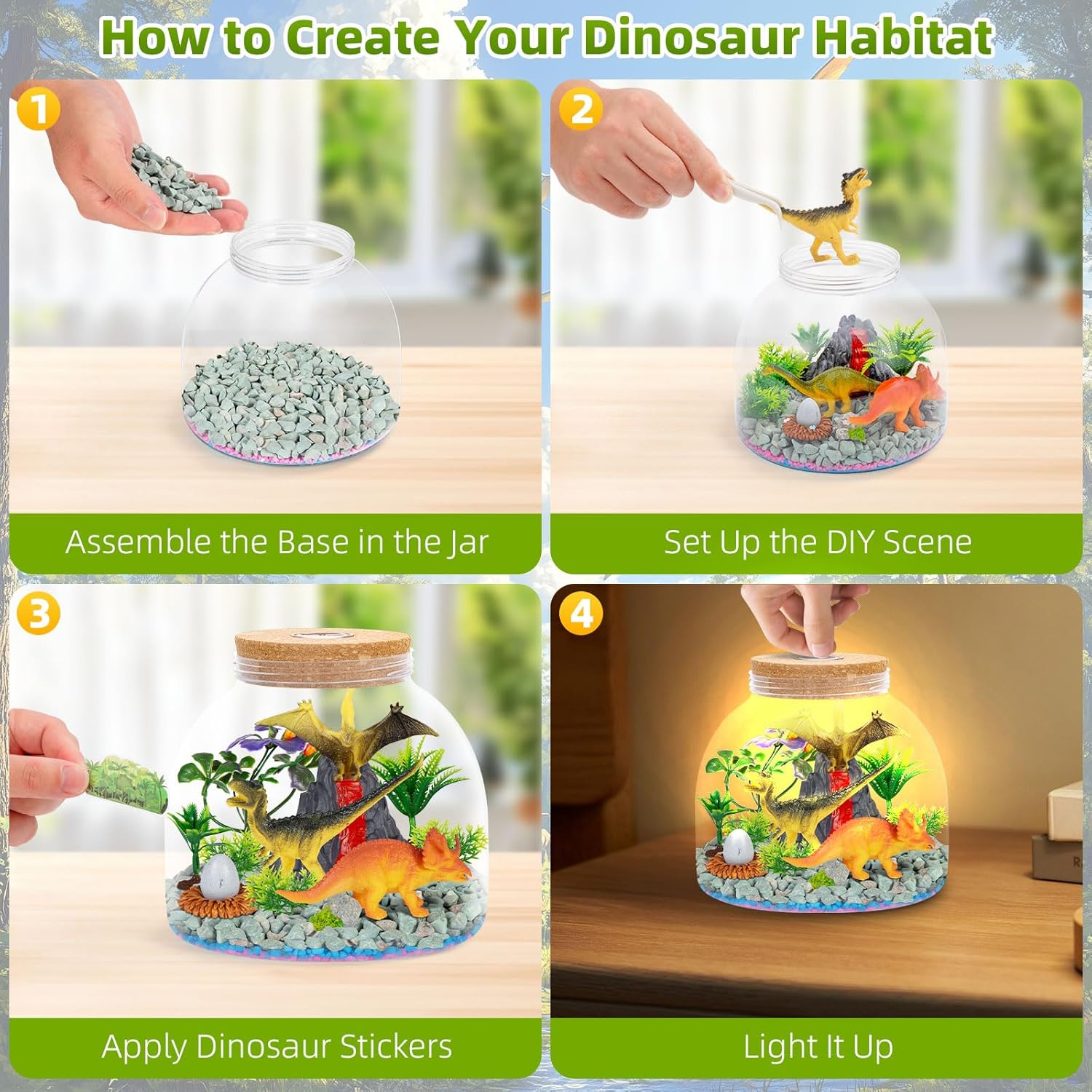 Dinosaur Light Up Terrarium for Boys – DIY Prehistoric Garden with LED | STEM Toy & Craft Gift for Kids Ages 4-8, Perfect for Birthday or Christmas