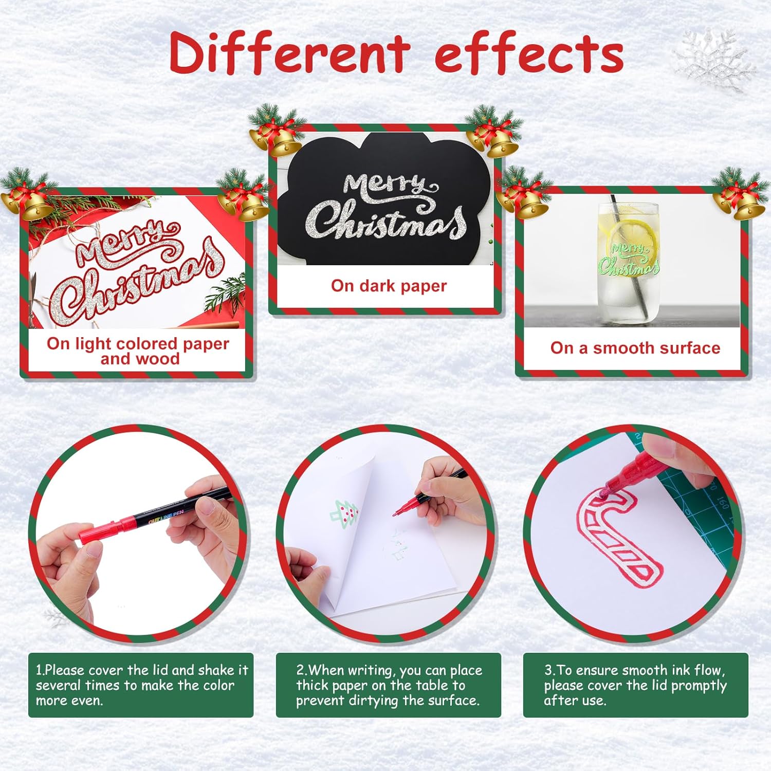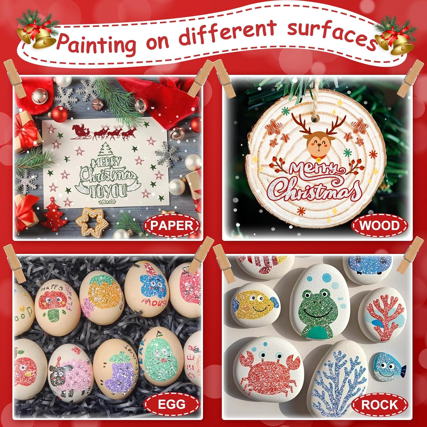 - ❤【Widely used】Glitter markers for kids can be used on many surfaces. such as rocks, wood, glass, paper, plastic etc. it's the best product for DIY crafts. You can use it to make Christmas decorations, New Year gift labels, diaries, birthday cards, and more. It can be used on various festivals.such as Christmas, New Year, Thanksgiving, gatherings, homecoming, etc