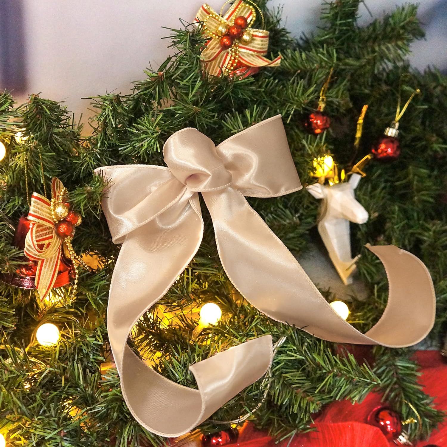 - OCCASION - Our Champagne Gold satin wired ribbon 2.5" are very easy to match and suitable for birthdays, party decorations, Mother's Day, Valentine's Day, Easter, Independence Day, Halloween, Christmas, New Year's gifts, Wedding decorations, Baby showers etc.