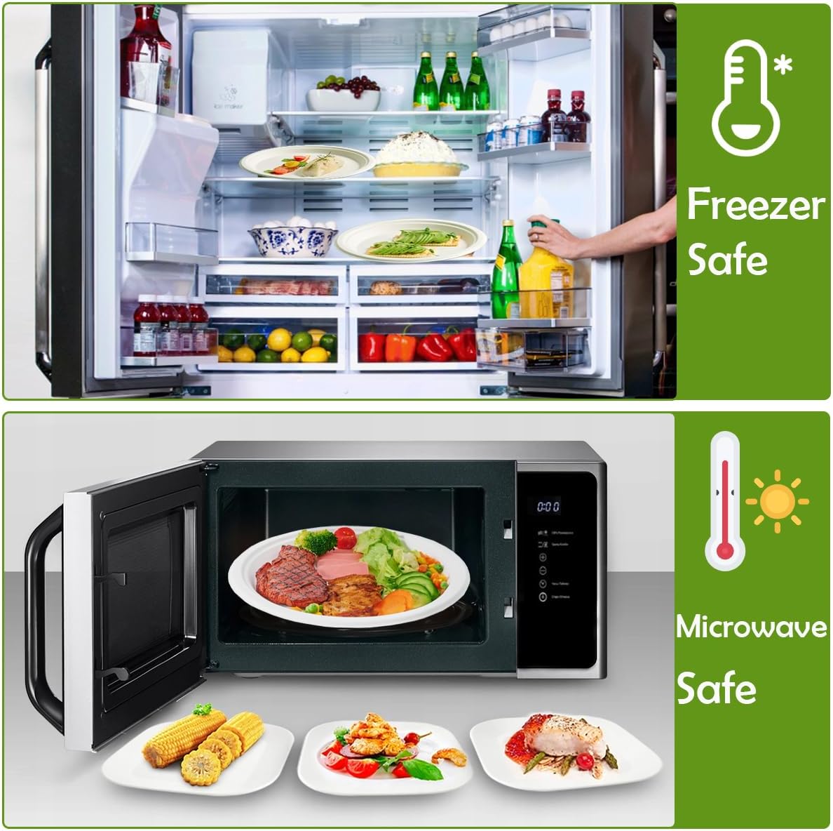 - 3️⃣🍽️【Microwave & Freezer Safe 】Paper plates can be used for hot or cold food and in microwave or freezer. Microwave safe up to 248F. Oil-resistant and leakproof. Hold lots of food without breaking or soap through