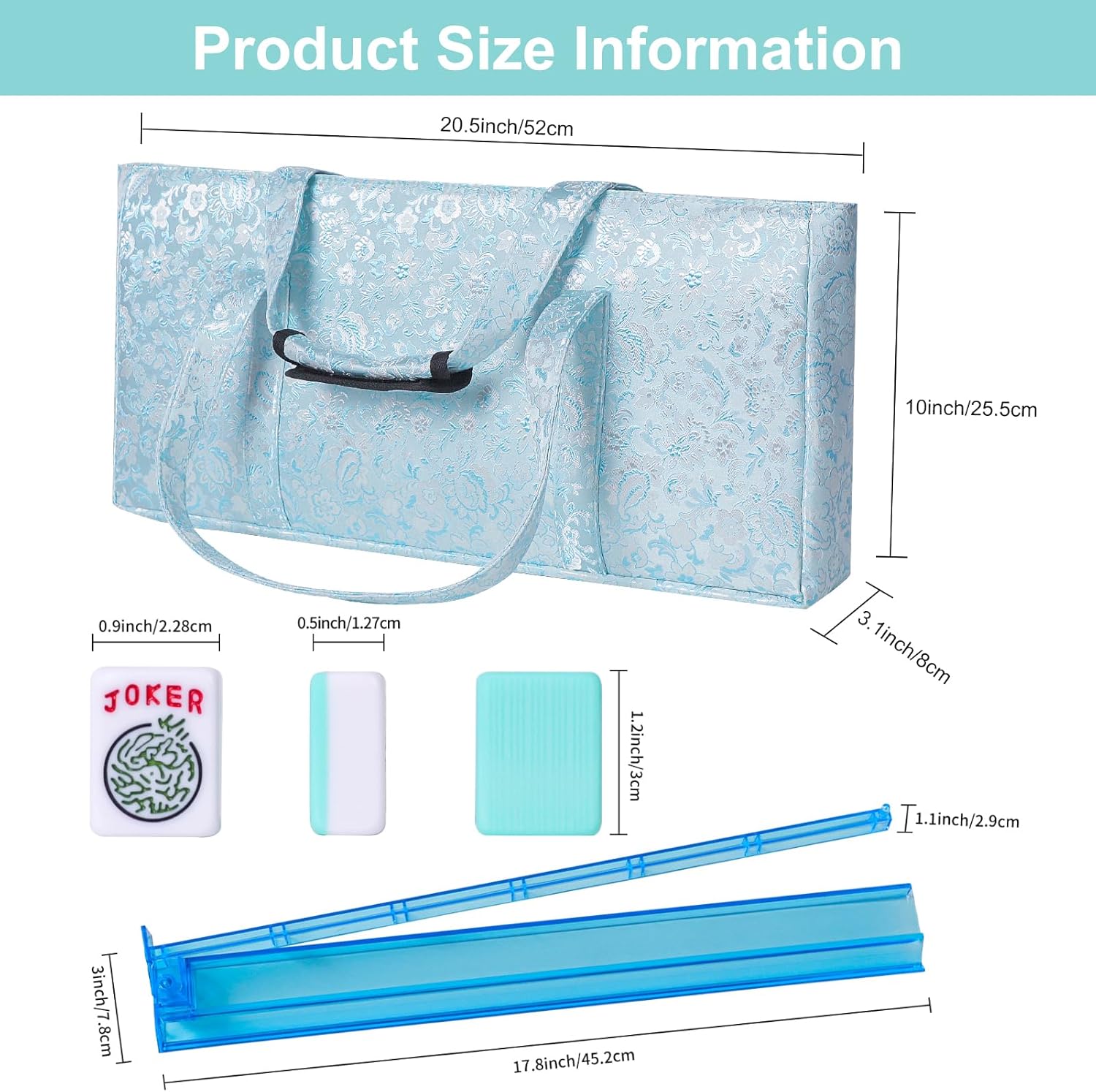 American Mahjong Game Set, 166 Light Green Tiles, Blue Bag with Entire Accessories, 4 All-in-One Rack/Pushers, Mahjong Tiles Set