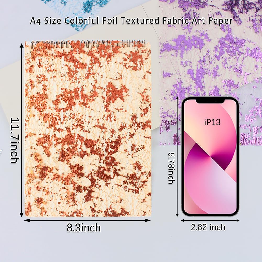 - A4 SIZE FOIL TEXTURED FABRIC – 10 SHEETS: This set includes 10 sheets of A4 size colorful foil textured fabric art paper, giving you more space to design intricate projects. Perfect for junk journaling, card making, and scrapbooking, these larger sheets provide ample room to showcase your creativity and add personalized touches to your projects.