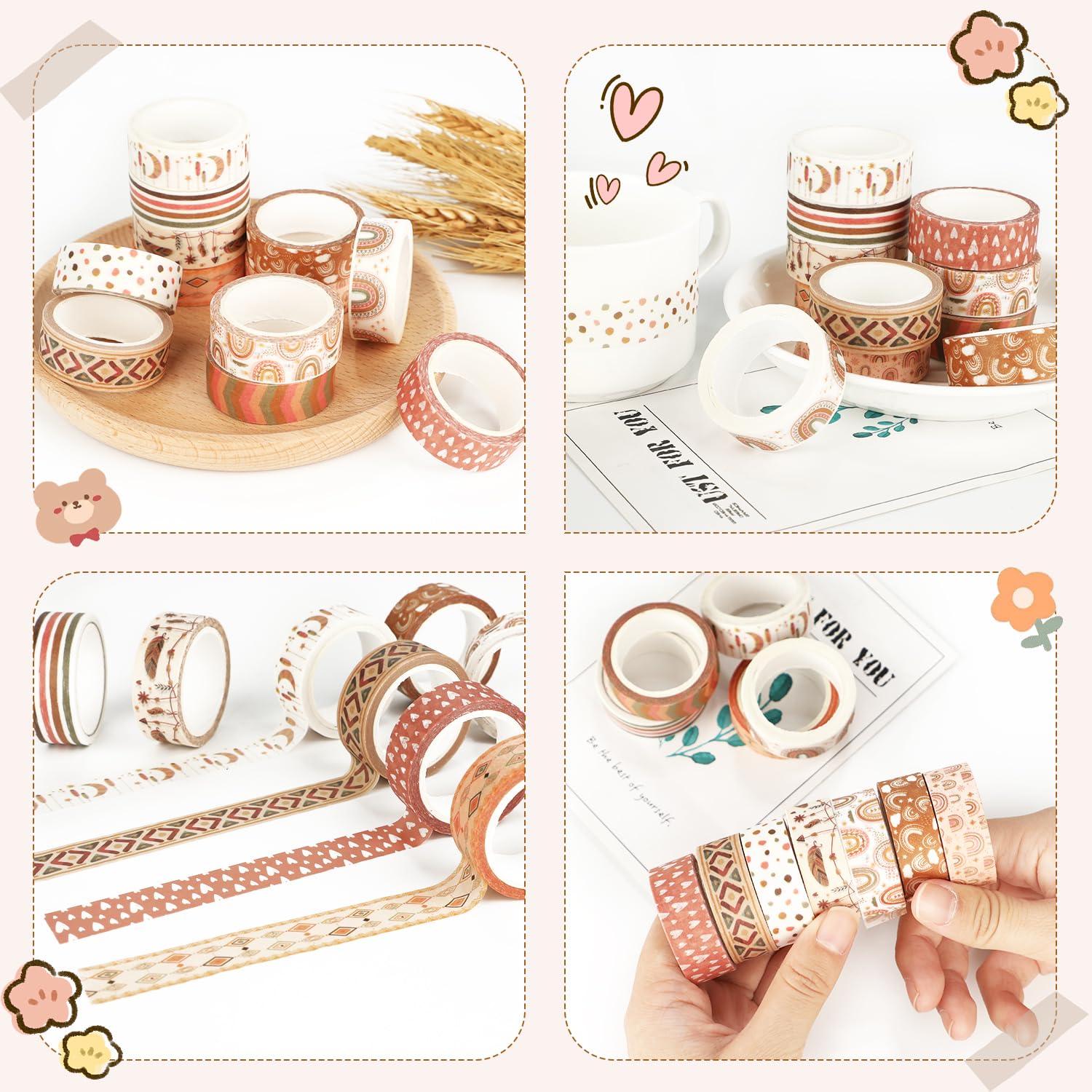 - UNIQUE & EXQUISITE DESIGN: In this tape set, all the paper tapes are colorful patterns and unique with the newest designs, including colored rainbow, sun, hearts, moons, stars, clouds, leaves, abstract geometry, stripes, dots, raindrop and more. Perfect for crafts, arts, painting or other projects and activities.