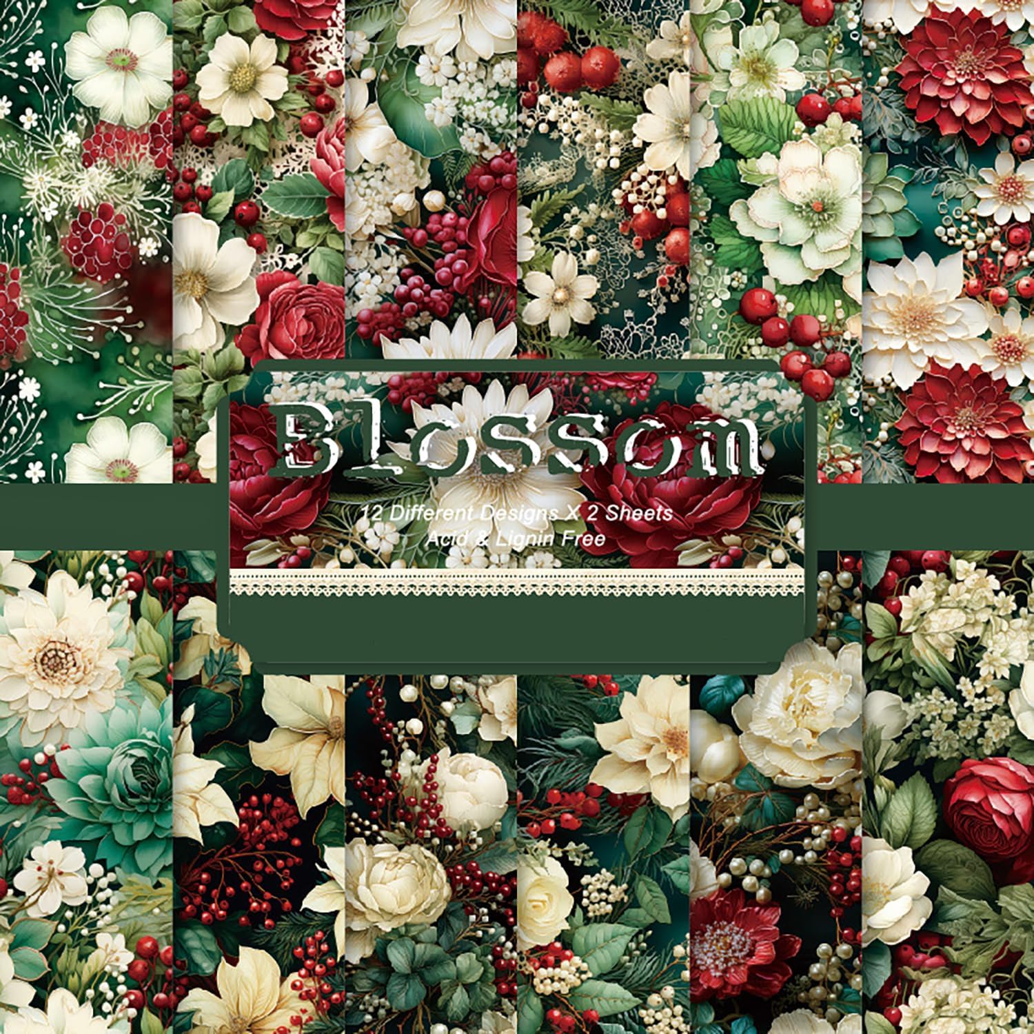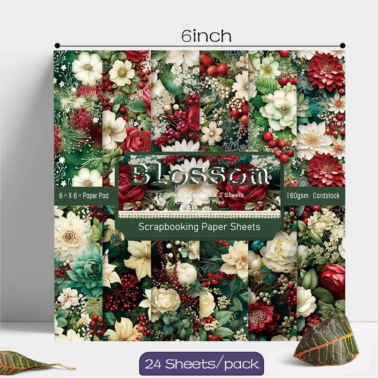 YASMEN Floral Scrapbook Paper Pad - Flower Patterned Cardstock Pads, 6x6 Single-Sided Craft Paper for Card Making, Scrapbooking, Greeting Cards, Junk Journal, Planners, Art Collage - 24 sheets