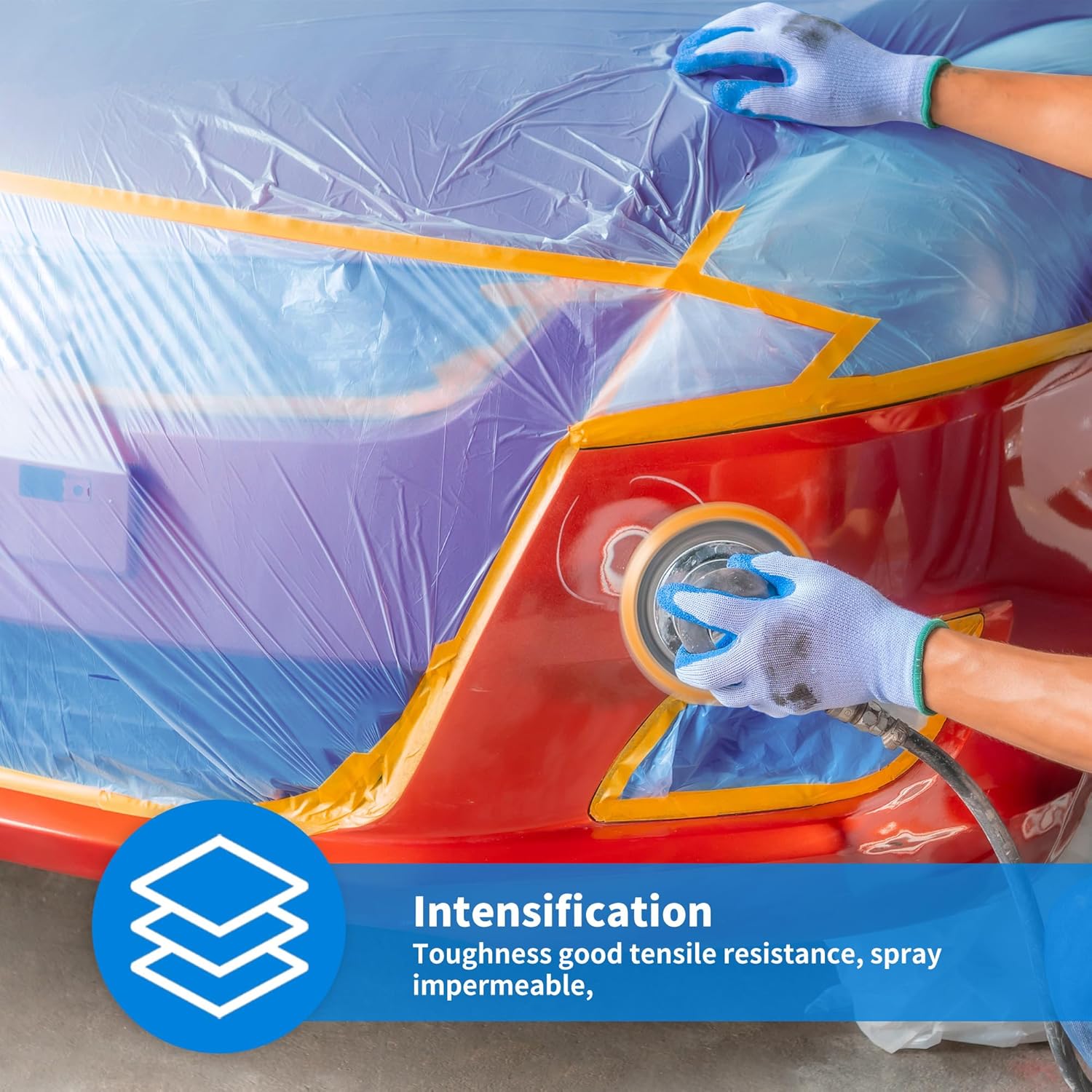 - Easy to Use : Our Pre-Taped Masking Film use Folding Design Easy to Unfold and Convenient to use, you just need to unroll the roll of masking film, put the tape side firmly in the right place, then cut it with scissors or tear it by hand, the plastic film will be electrostatically adsorbed and attached to the surface of the object.