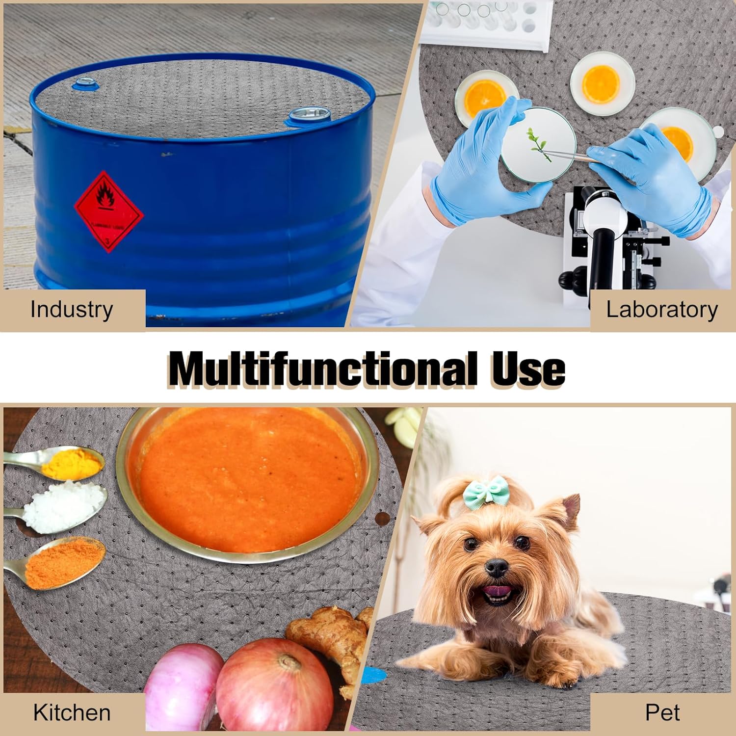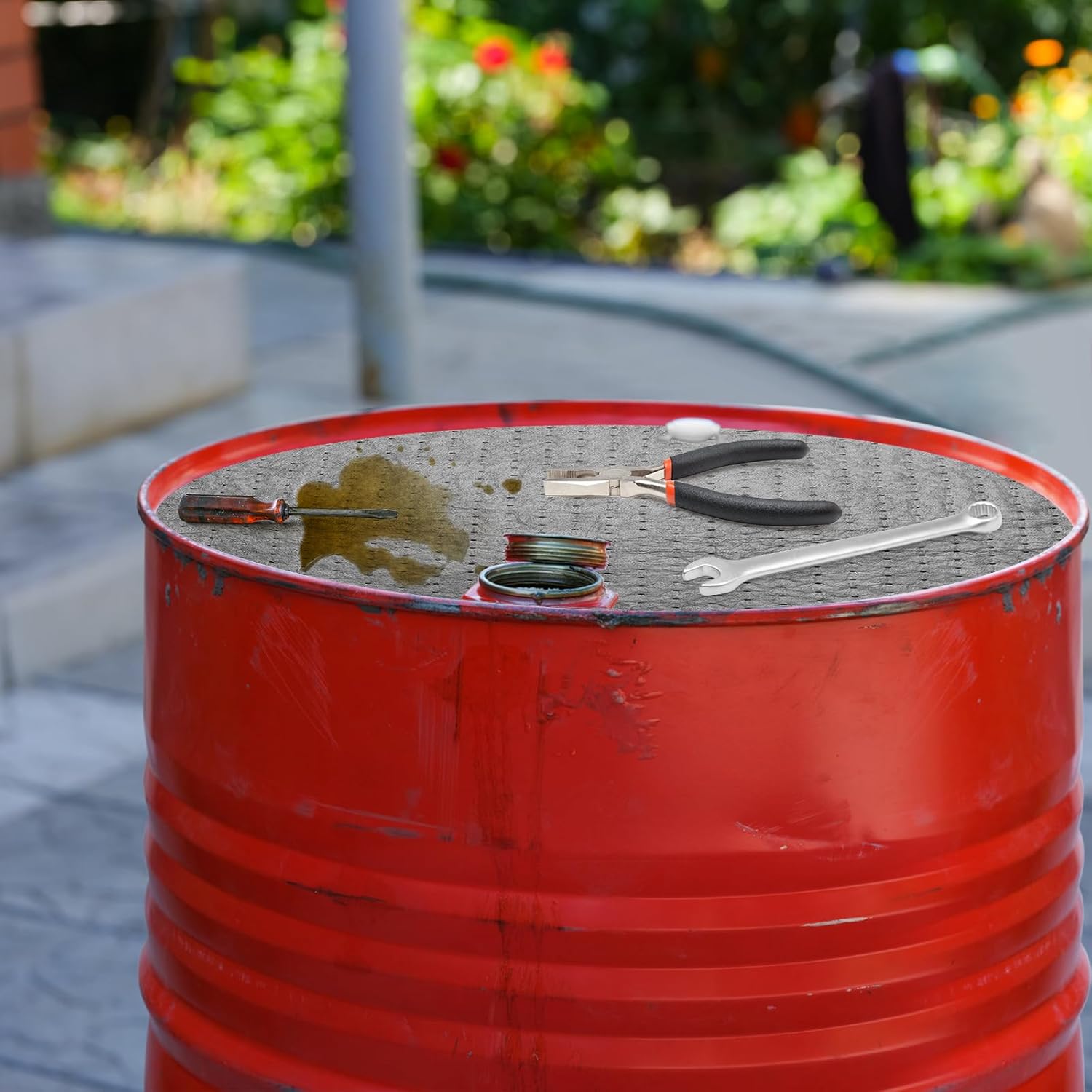 - 【Suitable Size】The diameter of this oil absorbent pad is 21.65 in, suitable for 55-gallon drum with a barrel cover diameter of 0.75 inches and 2 inches. Can be used directly without tools, and can be easily cut to the size you want, disposable and no need to clean.