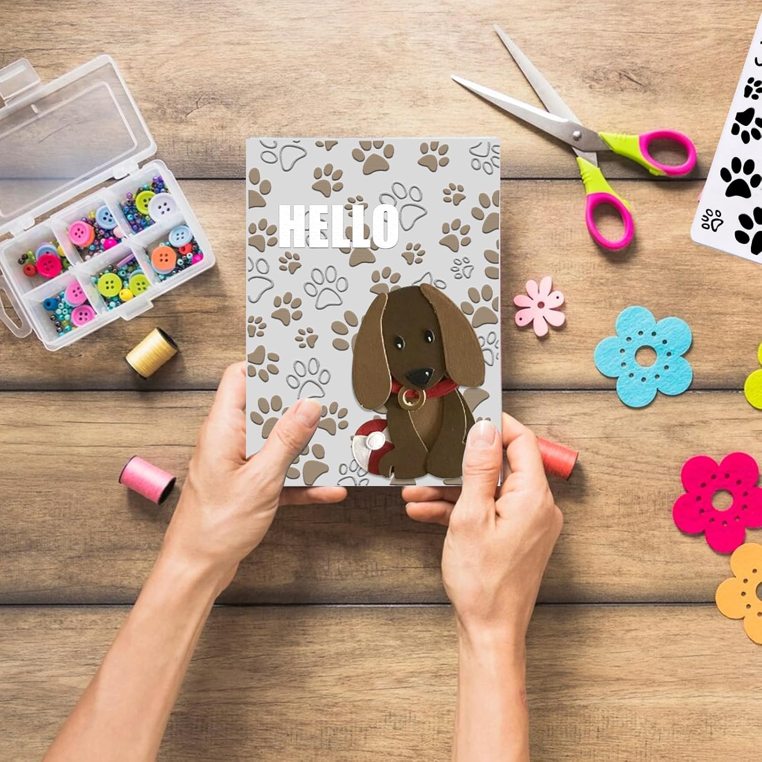 Glodecart Pawprint Background Embossing Folder, Plastic Textured Impressions Cute Dog Cat Footprint Embossing Folder Template for Card Making Dog Lovers Scrapbooking Paper Craft Album Stamps DIY Décor