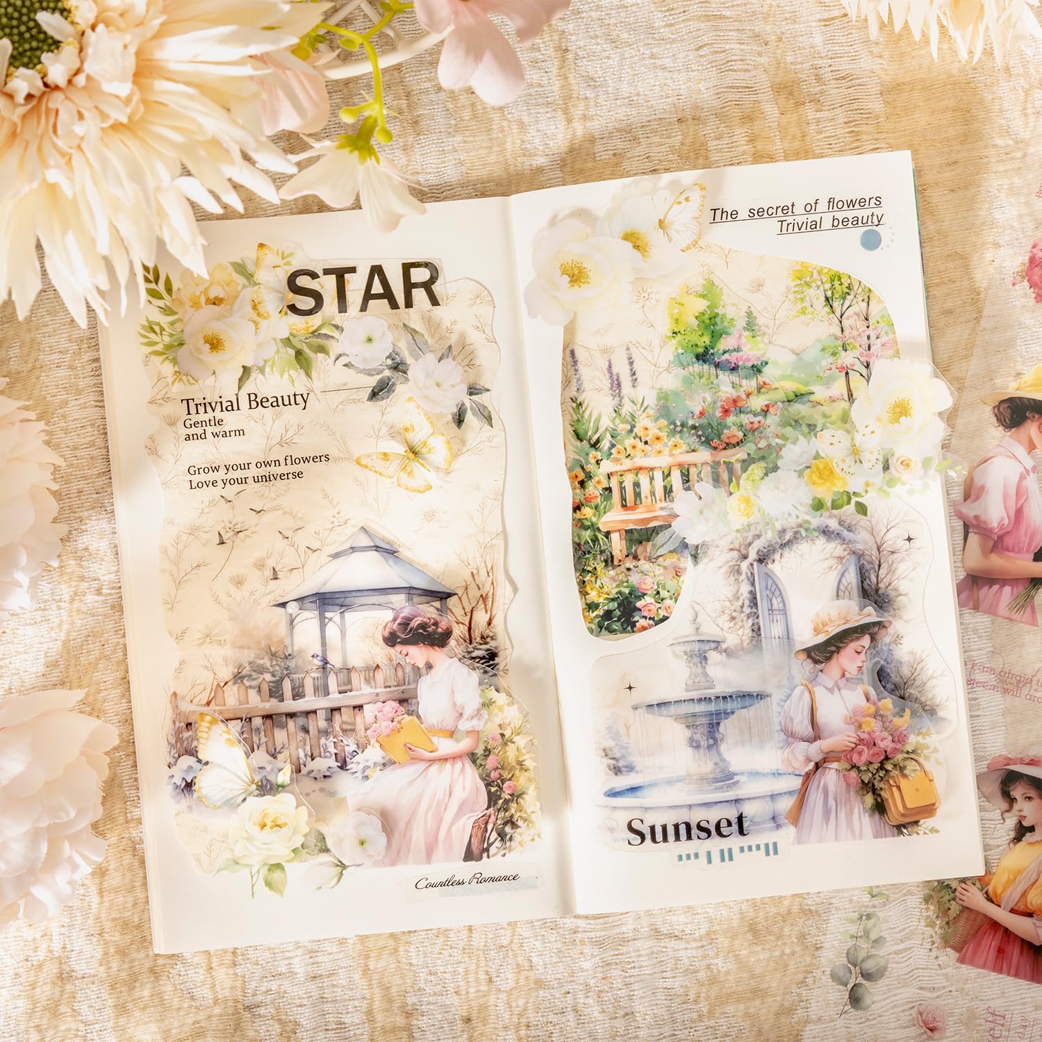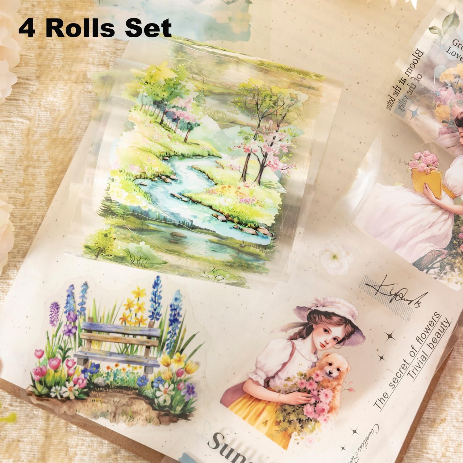 Girl and Scenic PET Tape Set, 4 Rolls Pre-Cut Adhesive Tapes for Scrapbooking, Junk Journaling, DIY Crafts, and Art Supplies